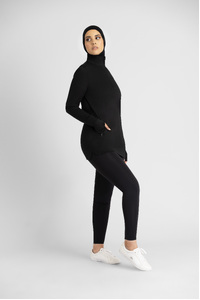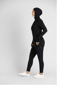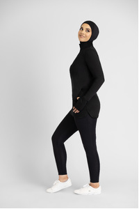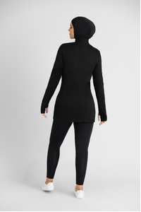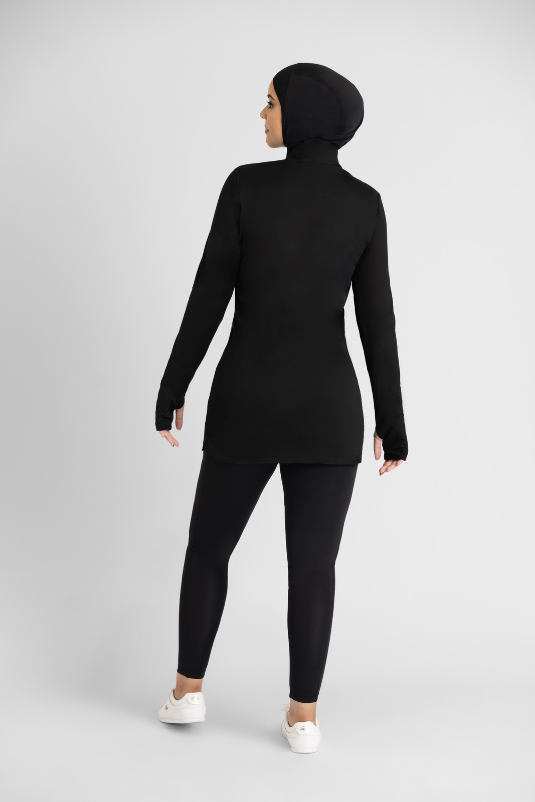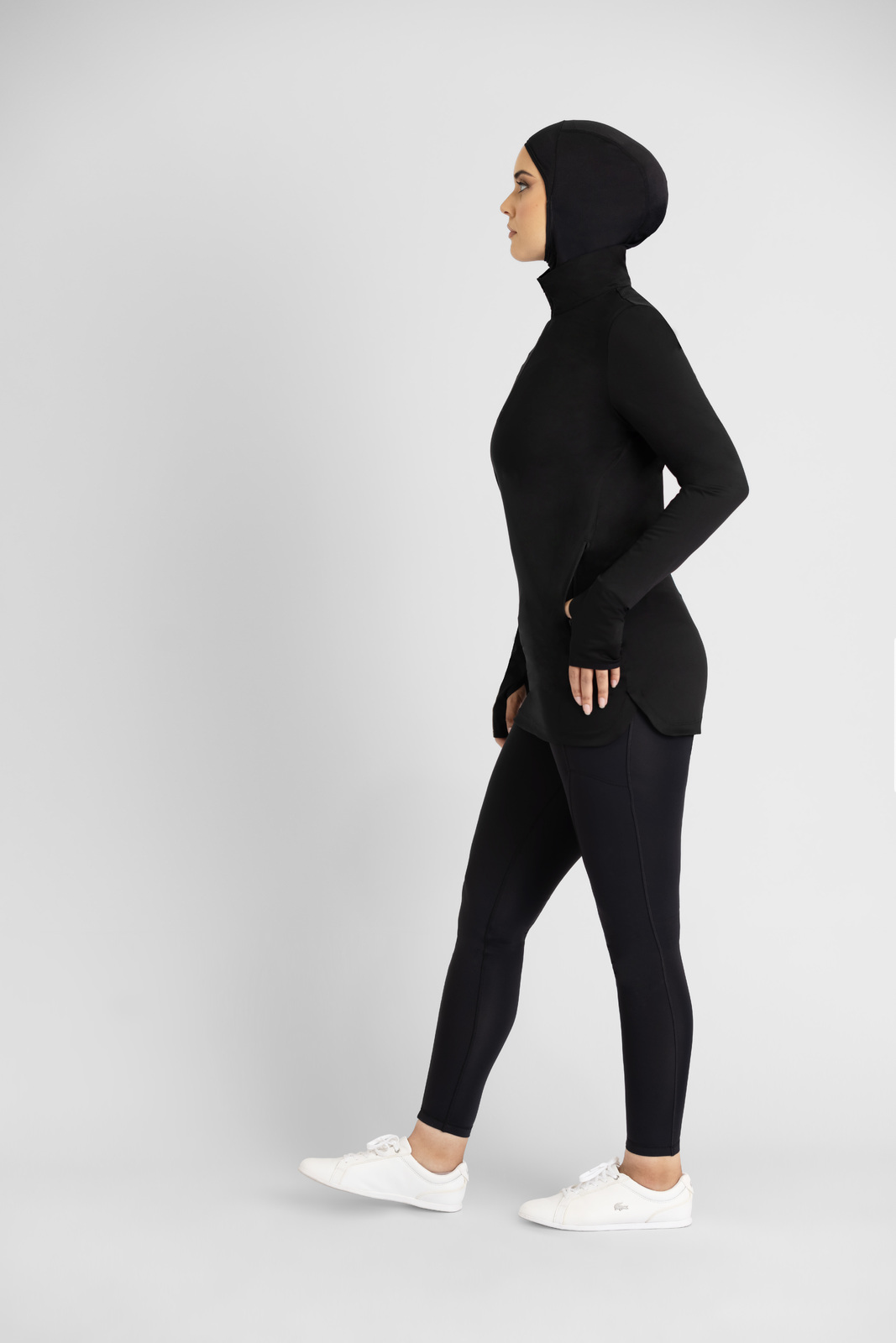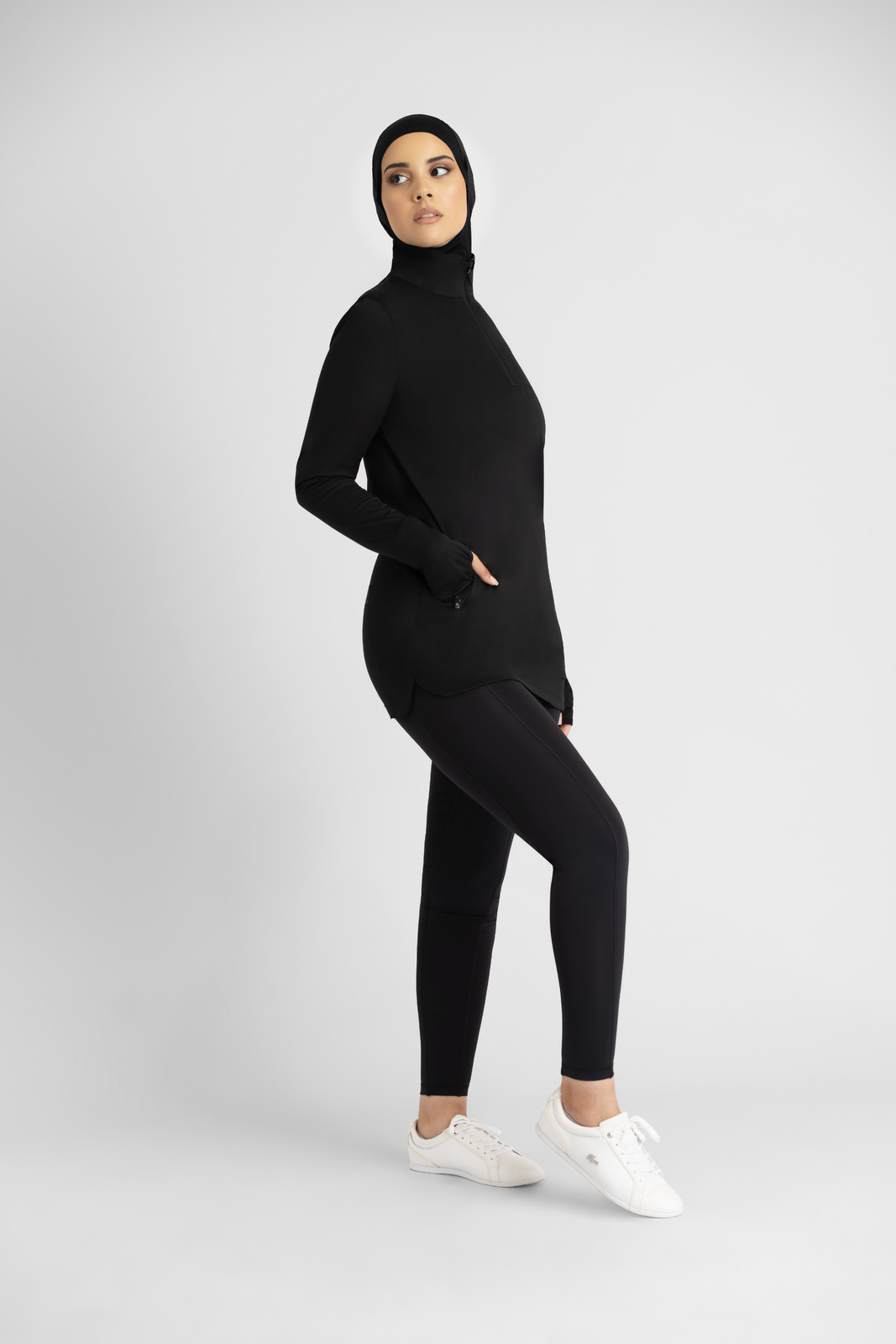 Gone are the days when you could barely find modest workout gear that looked as stylish as the rest. This lightweight top has just the right softness, just the right stretch, and a snug fit that feels like a second skin. This workout top is made specifically to fit the modest athlete and to allow them to push to their limits. Whether you're looking for a comfortable top to wear on your next yoga or Pilates class, the 1/2 Zip Training Modest Top