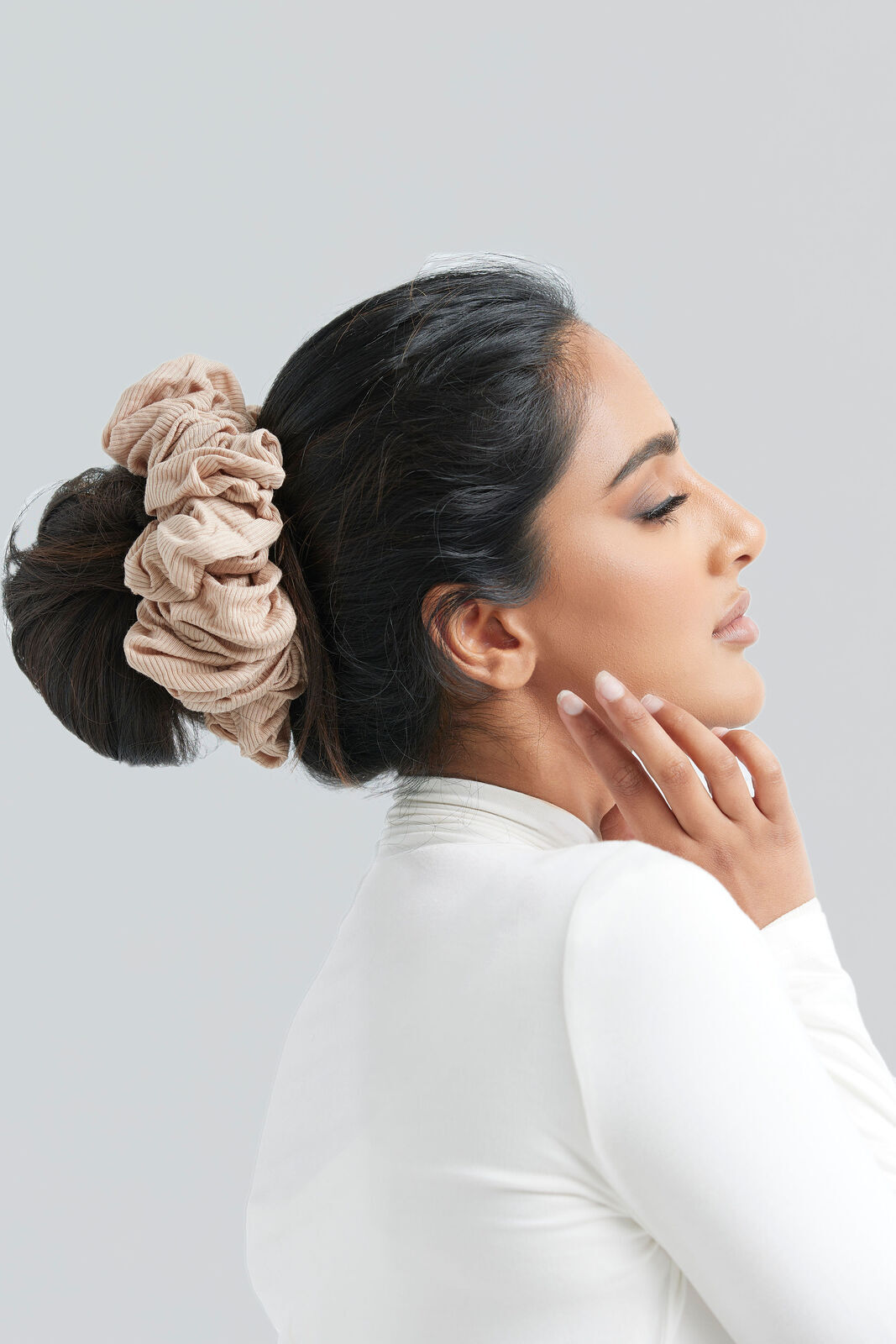 - Beige Bamboo Hijab Scrunchie