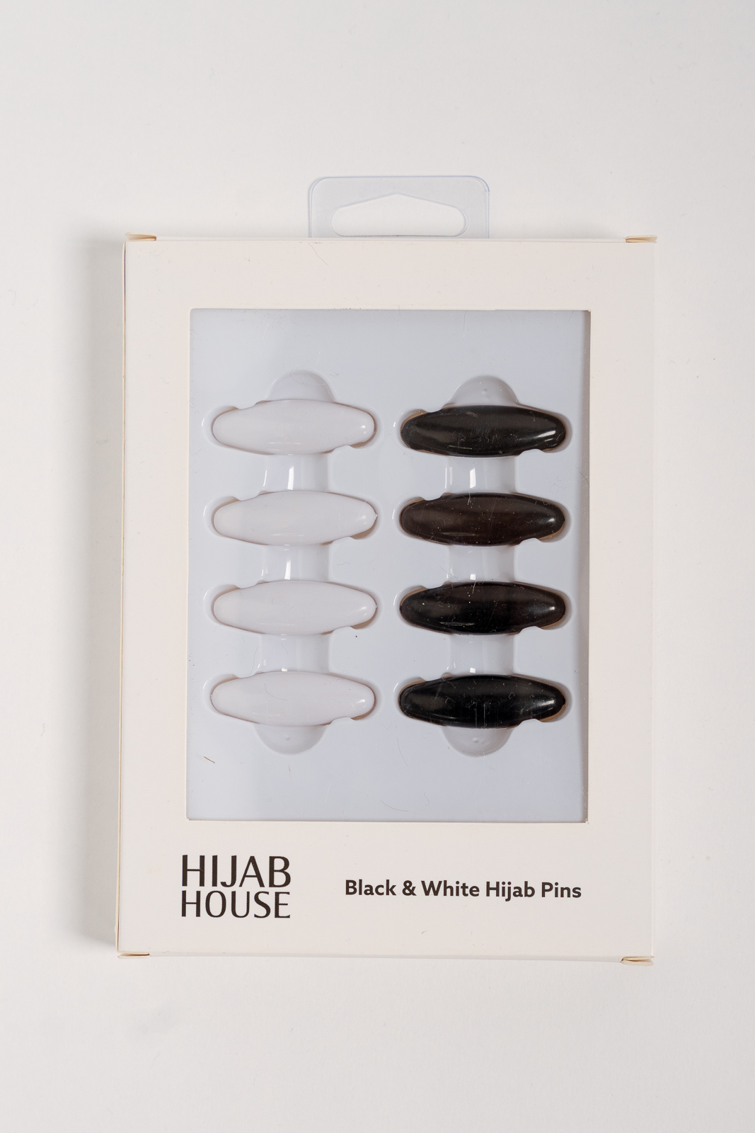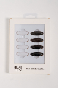 Introducing our beautiful Black and White Hijab Pins - a pack of 8 high quality pins perfect for any headscarf.