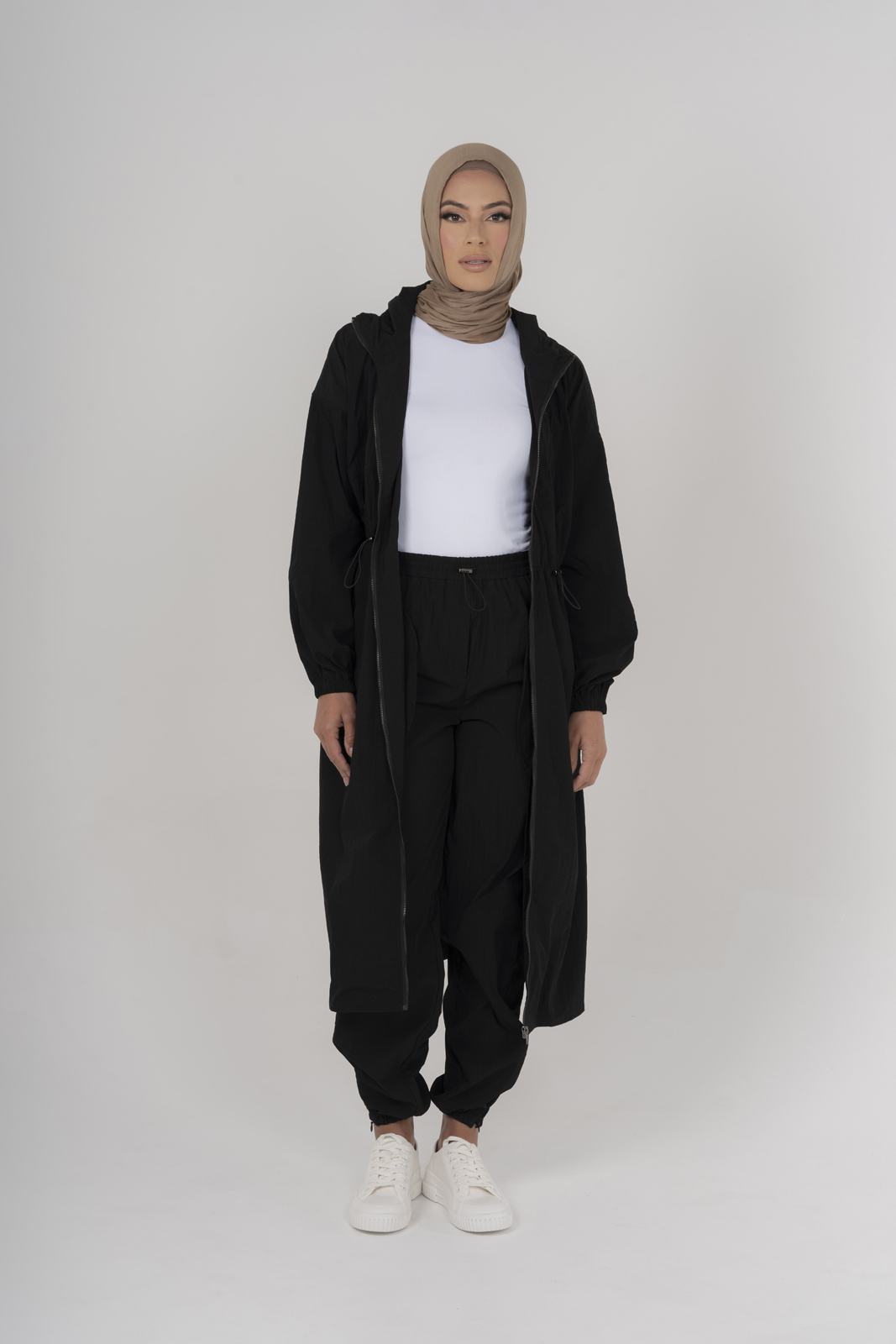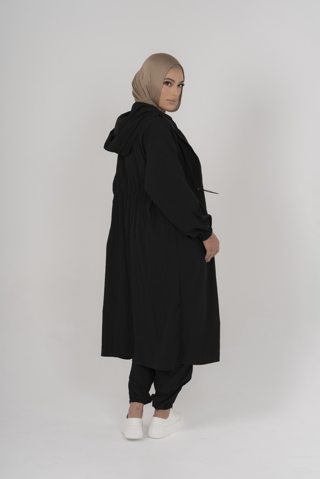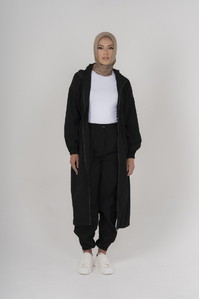 Experience the perfect blend of comfort and style with our Drawcord Jacket. Crafted from a lightweight cotton blend, this breathable jacket ensures you stay cool while looking chic. The modern design boasts a handy hood and hip pockets, offering practicality alongside trendsetting appeal. With a full zip closure and knee-length cut, it's adaptable for any occasion. The adjustable drawcord tailors the fit to your preference, adding a personalized touch. Pair it with our matching Drawcord Trousers for a coordinated and effortless look. Elevate your wardrobe with this versatile jacket that combines casual elegance with functional design.