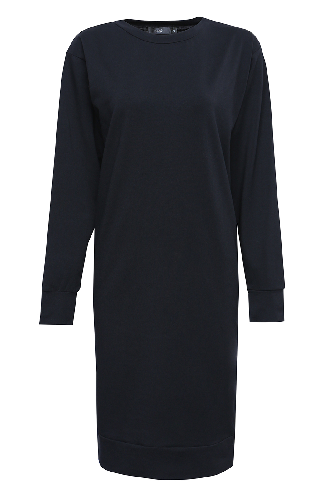 Soft light knit in long midi length featuring cuffed sleeves and ribbed cuff at bottom. Non-sheer.