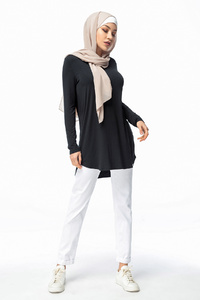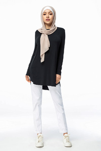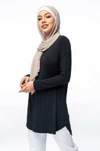 Made from a light and cooling material to keep you cool and comfortable on those hot days. The high crew neckline combined with a curved hem completes the look, making it the perfect top to wear with a skirt or wide leg pants for an effortless, everyday outfit. No need for layering with this top as it is non-sheer. Get the mid length lightweight top today and add it to your wardrobe for an effortless and stylish look.