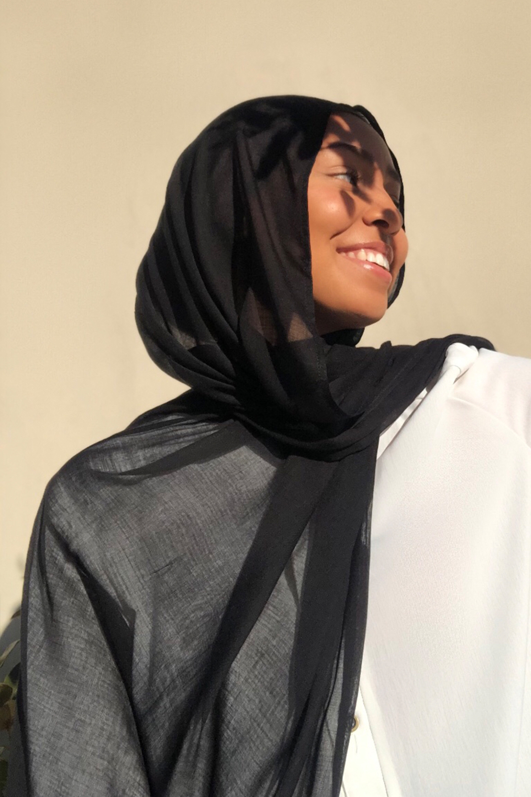 Black soft viscose cotton hijab. Lightweight and luxurious.