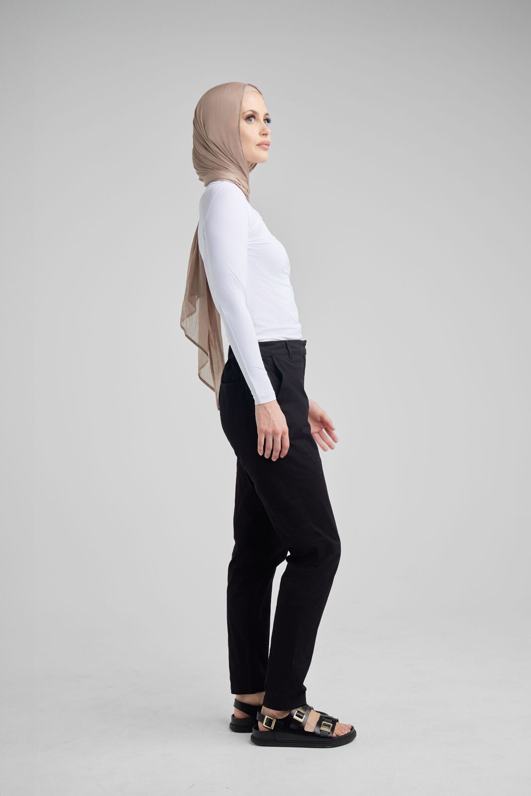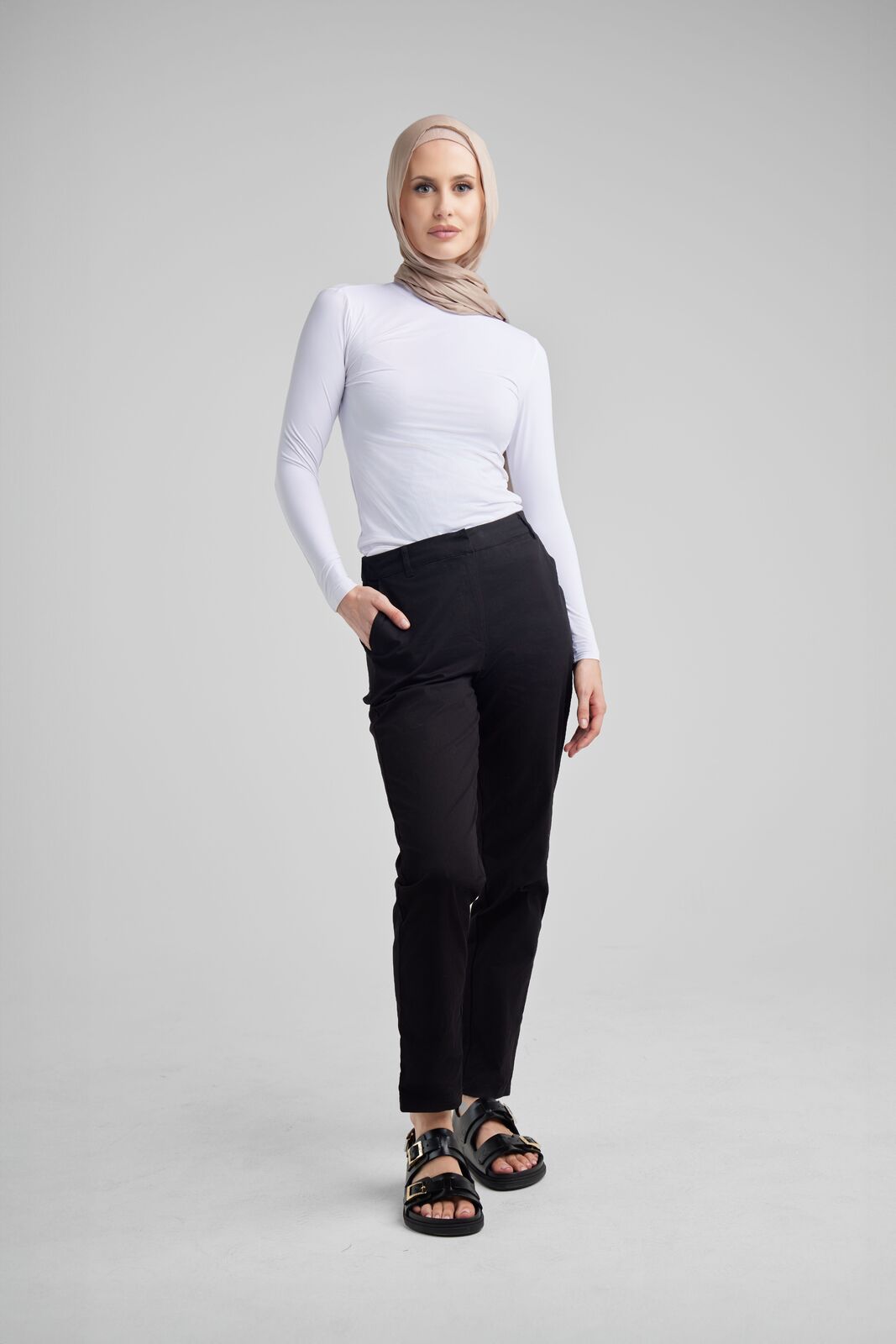 Whether paired with a blazer for the office or a flowing blouse for an evening out, these black pants are your go-to for a sleek, streamlined look.
