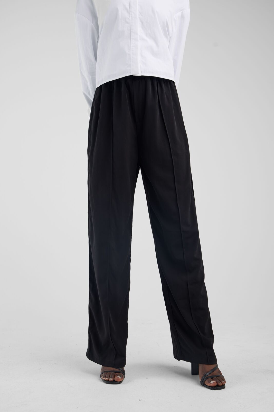 Elevate your ensemble with the quintessence of comfort and sophistication—our Black Relaxed Fit Trousers. Tailored to perfection, these trousers feature a wide, elasticated waistband complemented by an adjustable drawcord, ensuring a perfect fit just below the waist. The relaxed cut not only promises ease of movement but also flatters with its graceful silhouette. These trousers are a versatile staple, seamlessly transitioning from office wear to evening elegance.