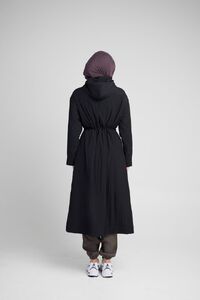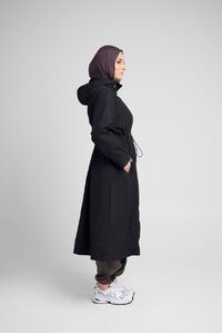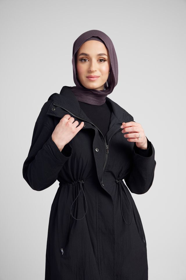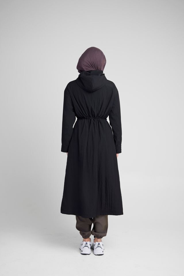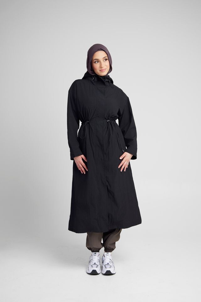 Enhance your closet with the Black Relaxed Jacket, a versatile longline anorak ideal for transitioning between seasons in style. Made from lightweight nylon, this jacket features a relaxed fit with an adjustable waist, ensuring a personalized blend of comfort and fashion.