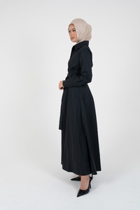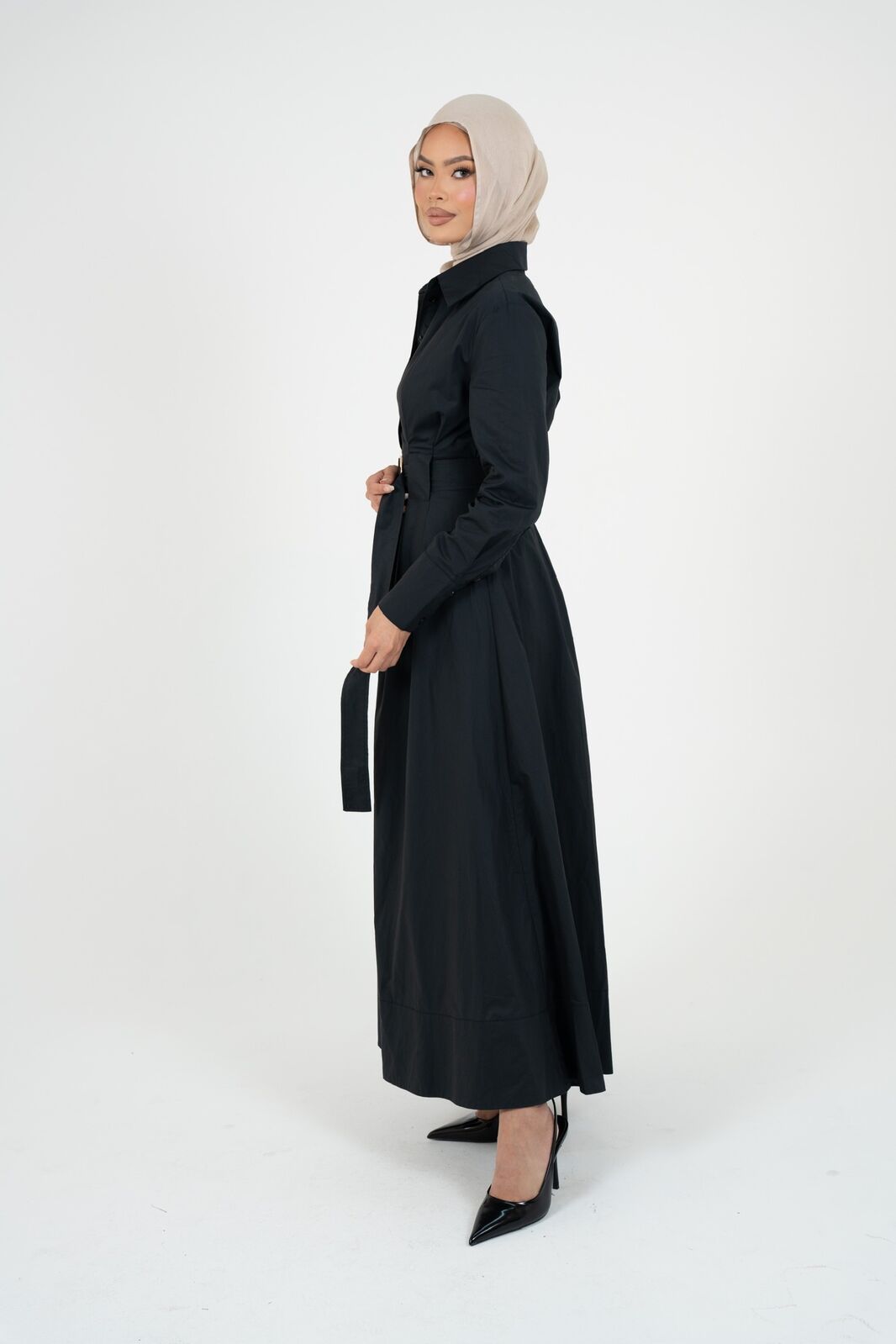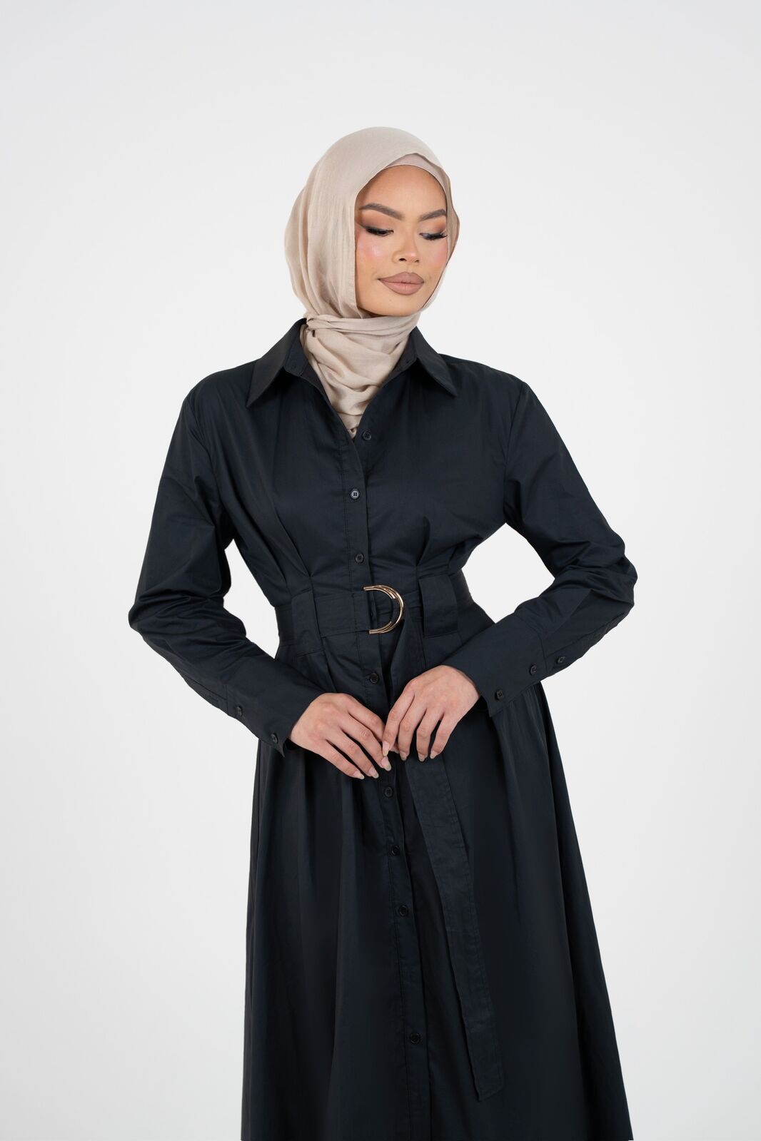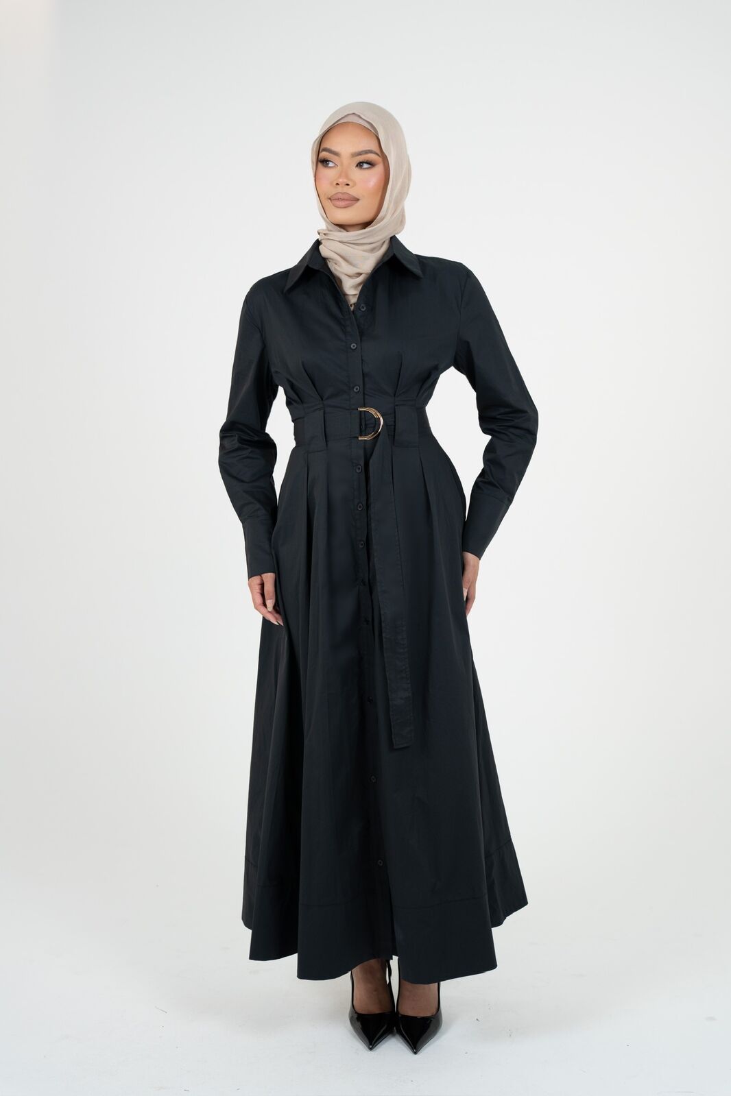 Elegant, versatile, and effortlessly polished. The Black Soft Pleated Dress is designed with a timeless shirt dress silhouette—complete with a pointed collar, button-down front, and a matching belt to define your shape. Soft pleats flow beautifully with every step, while the deep black hue adds a touch of sophistication to any occasion.