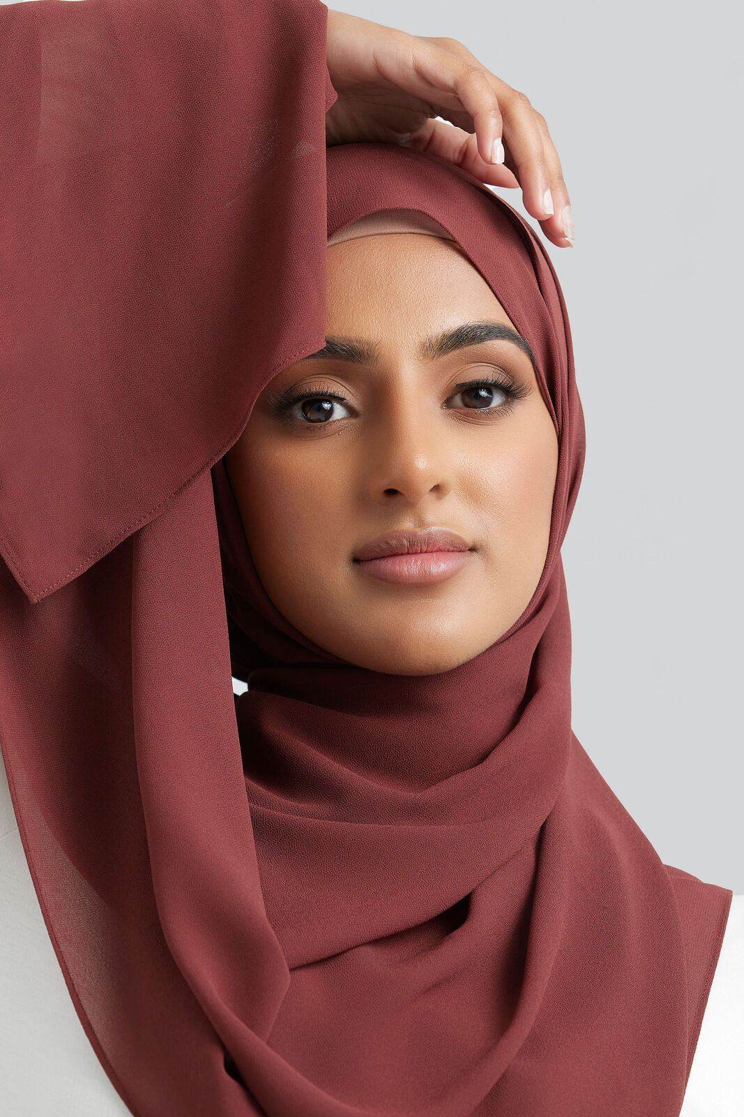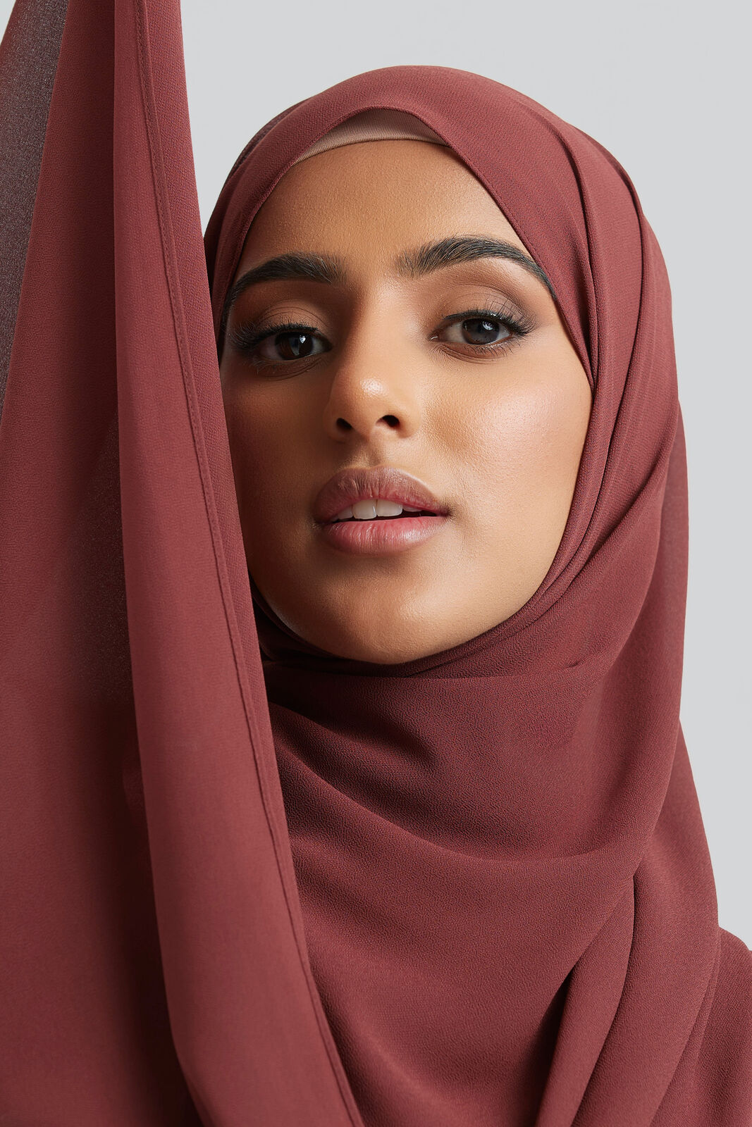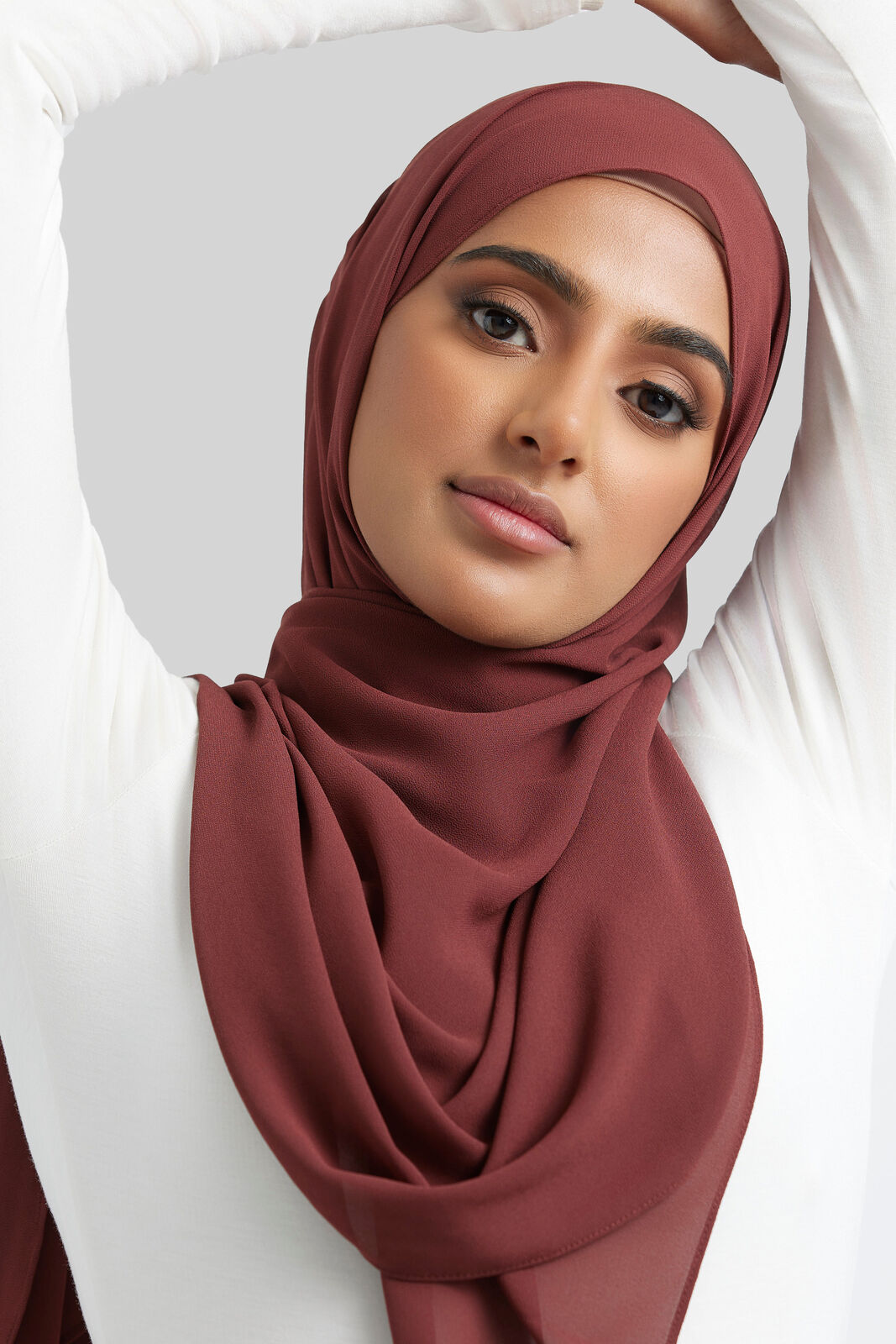 Introducing our famous signature plain hijab. Our plain hijab is made from essential chiffon material. Featuring a lightweight material that is soft to the touch, and breathable. They drape easily and have a slight stretch. It's perfect for all-day wear, whether you're dressing up for a special occasion or just going about your day, this is the perfect hijab for you! We have put in a lot of effort to assemble this selection featuring a diverse array of shades that can match your daily lifestyle.