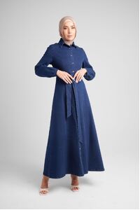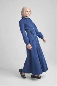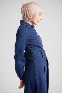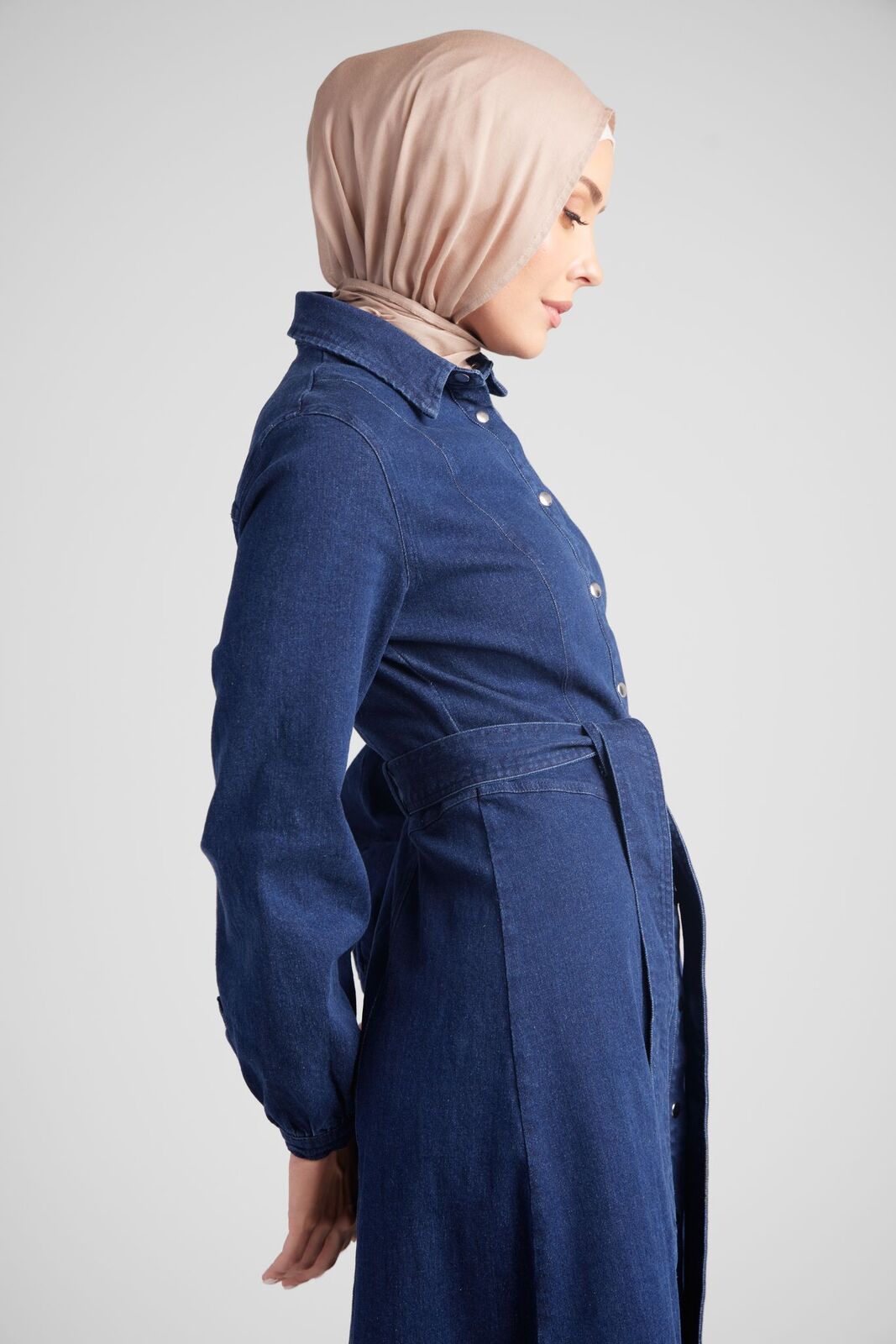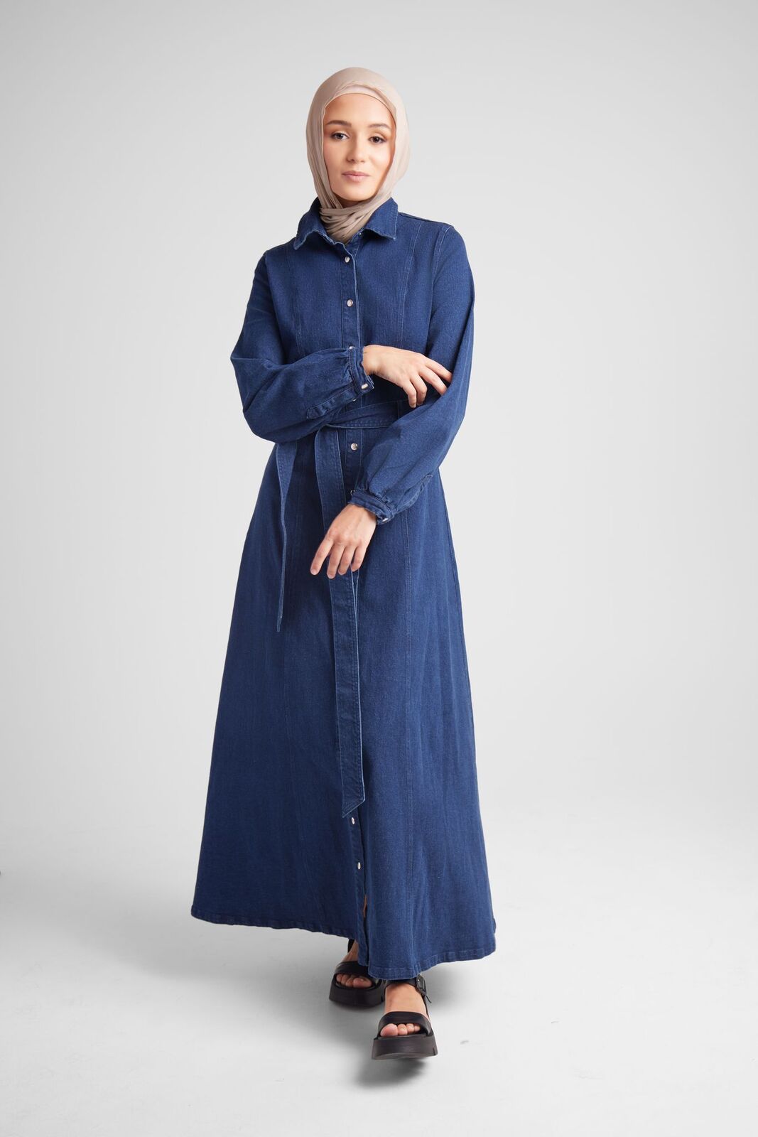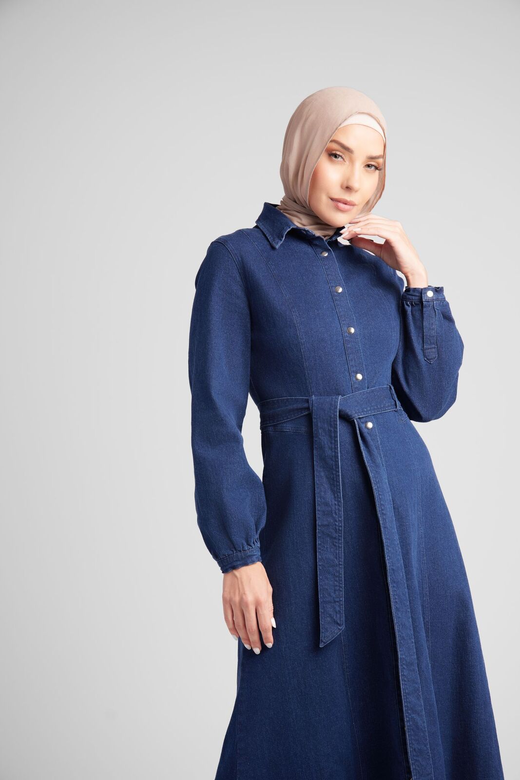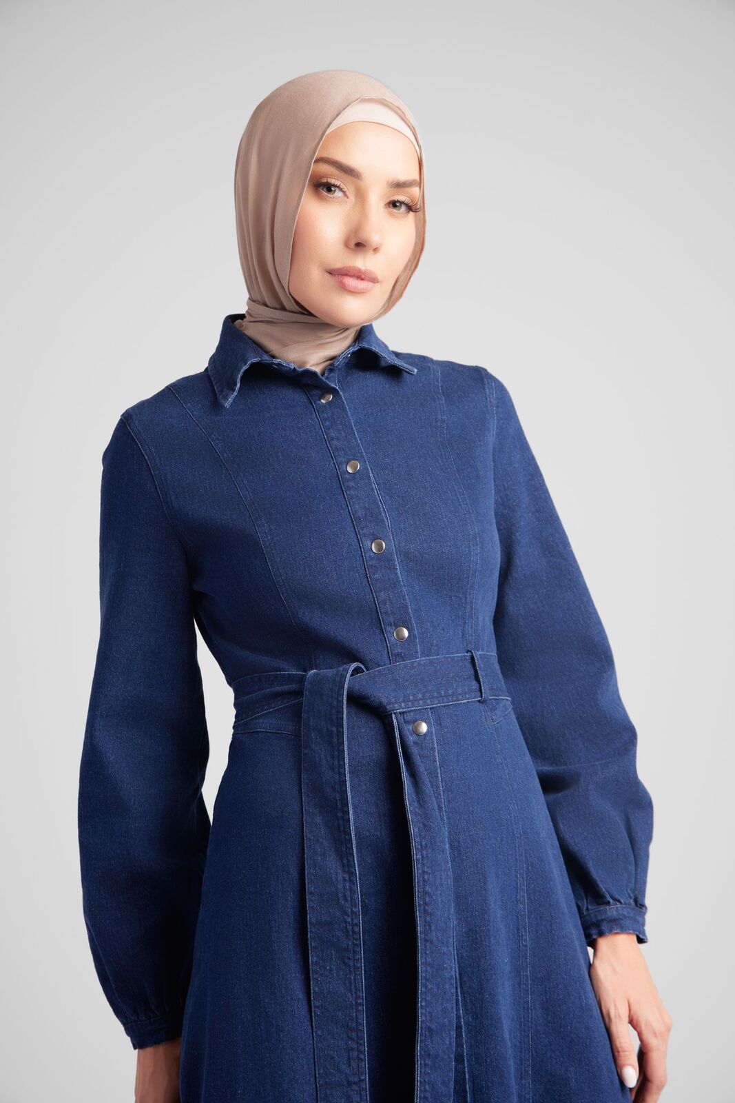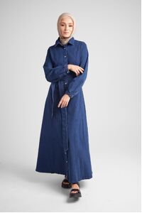 The Button-Through Denim Dress epitomizes classic fashion with its comfortable fit. Its timeless, feminine shape, crafted from flexible denim, adapts perfectly to your body, allowing for ease of movement throughout your day. The dress's full-length buttons make it a breeze to slip on, while the sleek waist belt adds a touch of elegance, cinching your waist for a more flattering profile. It's an effortlessly stylish piece that makes a comfortable, classic statement in your wardrobe. Pair it with sandals or sneakers for a chic look.