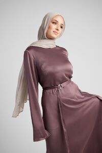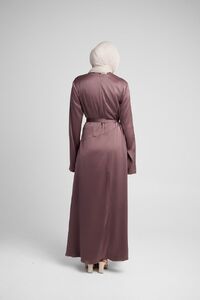 This stunning satin dress is a wardrobe essential, perfect for any event. The luxurious satin fabric drapes beautifully, enhancing your silhouette with its form-fitting design. Long sleeves featuring a stylish slit bring sophistication, while the floor-length hem exudes timeless charm. The removable belt offers the flexibility to cinch the waist to your preference, ensuring a tailored and flattering fit. Whether you're attending a formal event, special dinner this dress guarantees to make a statement. To perfect your ensemble, consider adding sparkling jewellery and chic heels.