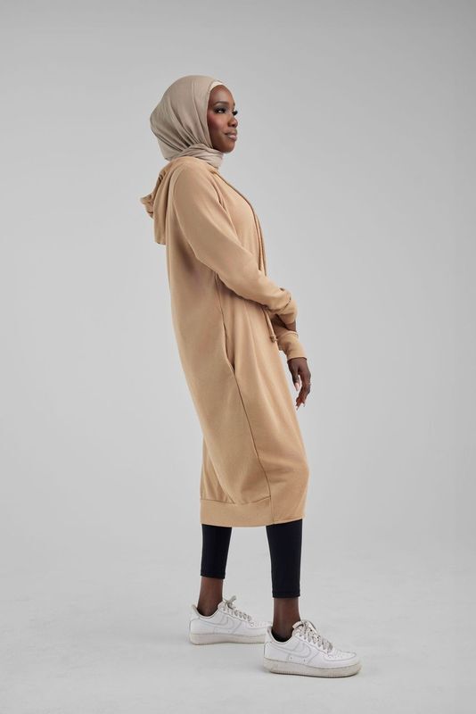 This hoodie is made from a soft tracksuit fabric, with a drawstring hood, quality ribbed cuffed sleeves, and a slimming silhouette. It's comfortable and versatile, perfect for all year round. Whether you're looking for a comfy day-to-day outfit or a cool evening look, this long black hoodie has you covered. It's non-sheer, so you can feel confident that you look great every time you put it on. Get your hands on this timeless classic today!