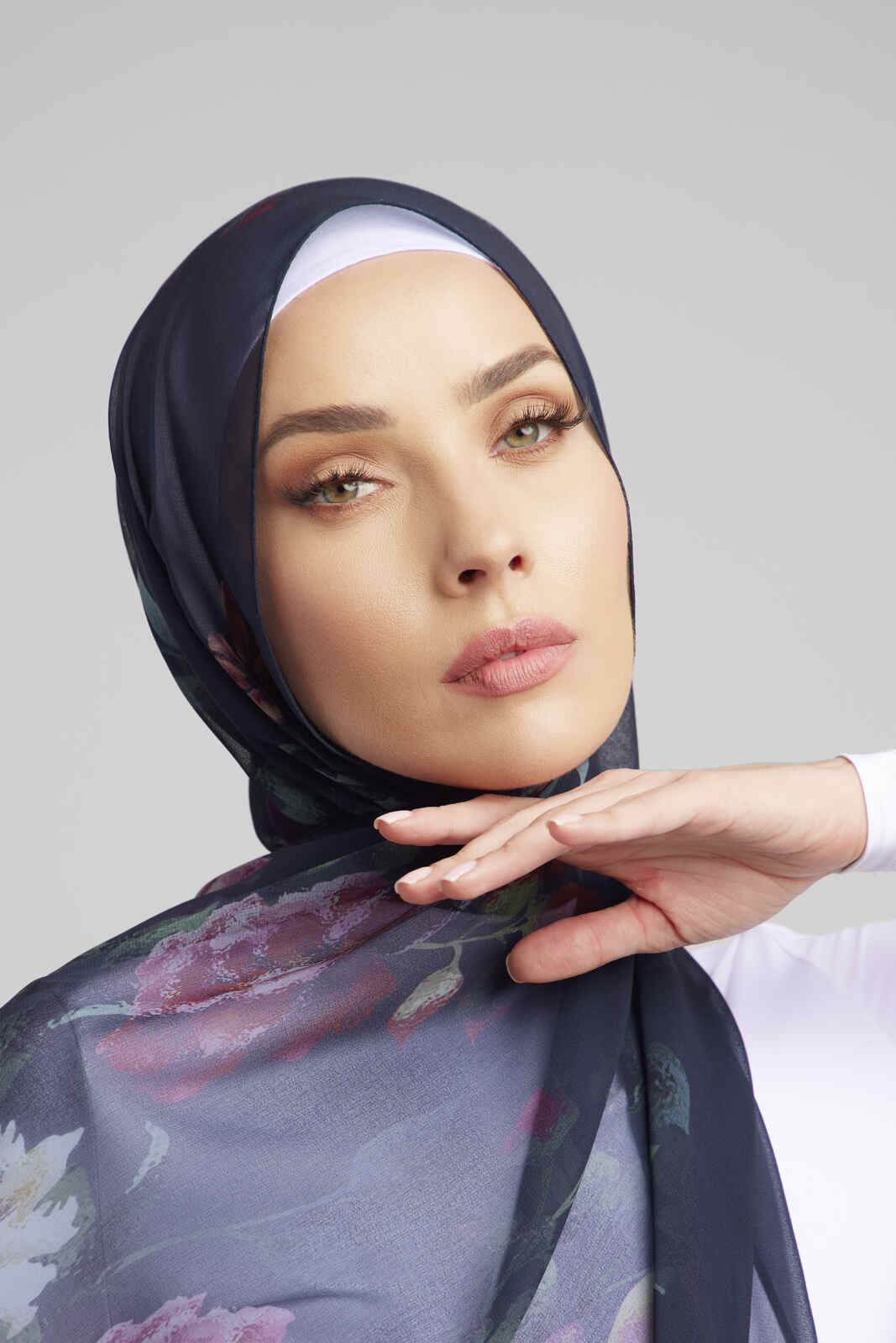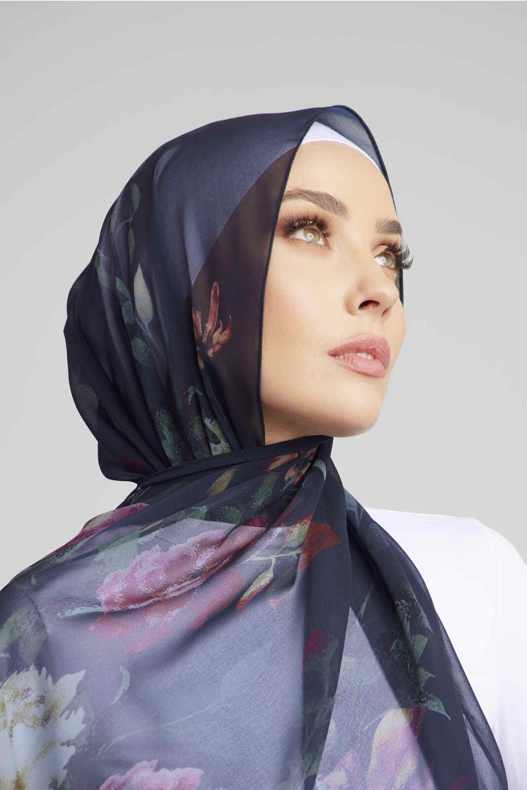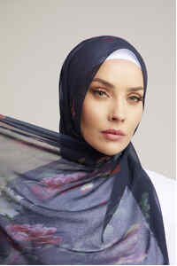 Introducing the 'Dark Blooms' Hijab, made from the finest chiffon this hijab gently caresses the skin, providing a comfortable fit that stays in place. The print features an enchanting array of florals in deep reds and blush tones, blossoming against a dark background to create a look that is as versatile as it is captivating. Designed to complement a multitude of outfits with ease, this hijab is a perfect accessory for those seeking a touch of floral in their everyday wear. • Material: chiffon • Size: 60cm x 170cm