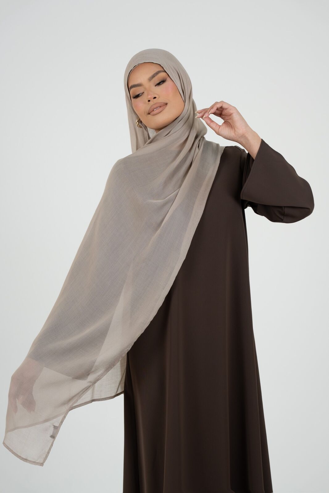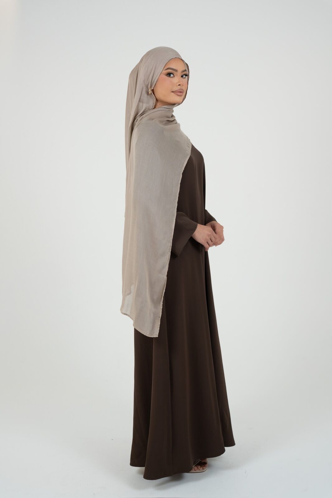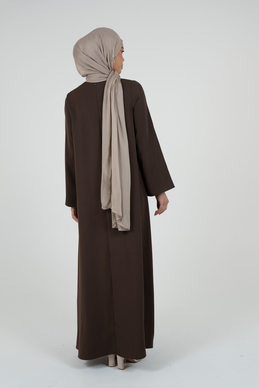 Meet your new go-to abaya—the Dark Chocolate Abaya. Designed for effortless wear, this slip-on piece is perfect for days when you want to look put-together with minimal effort. The non-sheer fabric keeps you covered and confident, while the wide sleeves add a touch of elegance and ease. The rich, dark chocolate color is timeless and versatile, making it a staple for any modest wardrobe. Whether you're dressing it up or keeping it casual, this abaya is all about comfort, style, and simplicity.