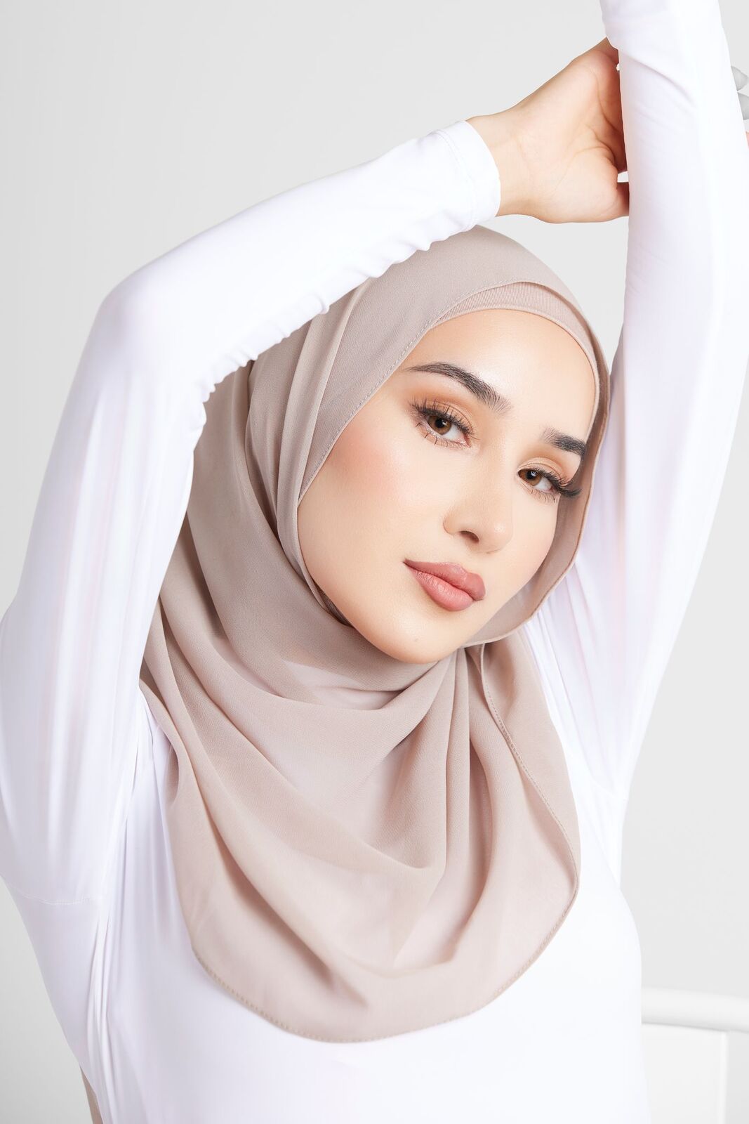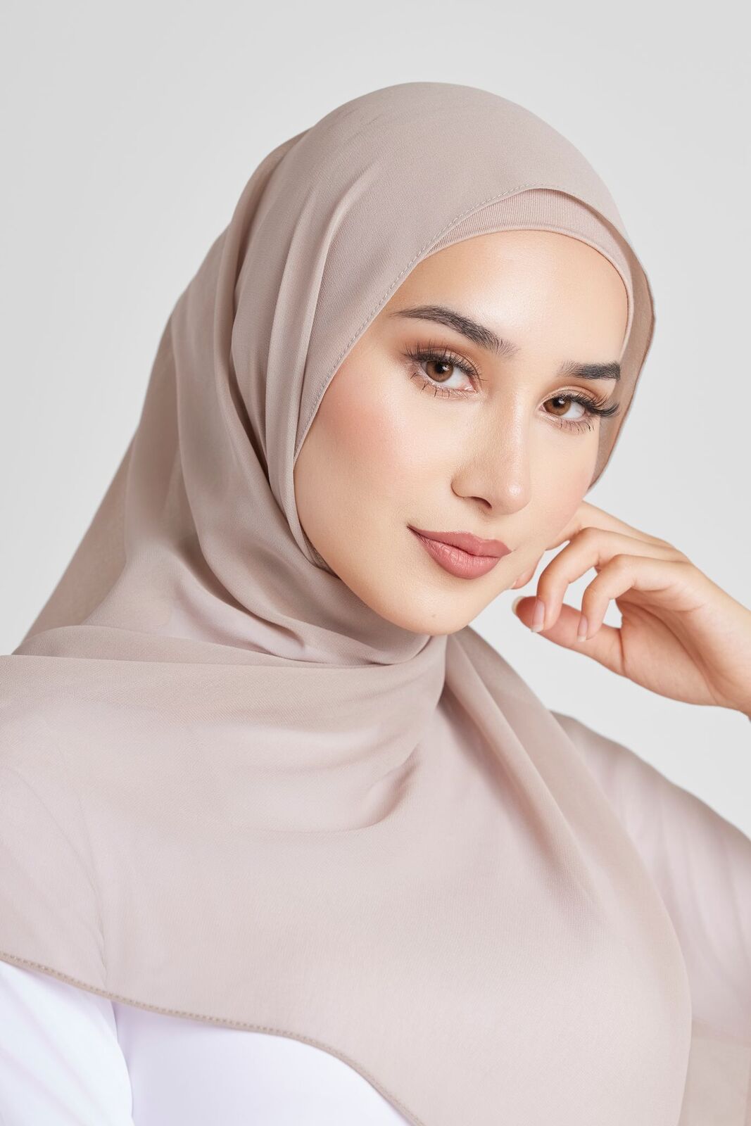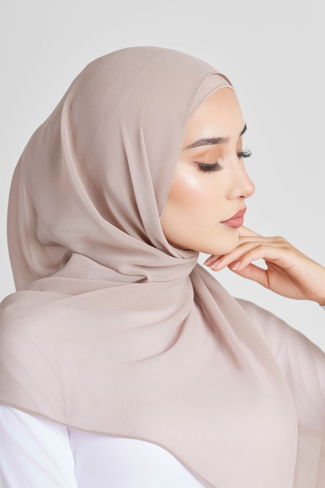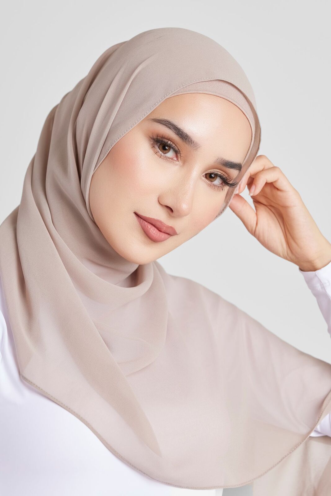 Our plain hijab is made from essential chiffon material. Featuring a lightweight material that is soft to the touch, and breathable. They drape easily and have a slight stretch. It's perfect for all-day wear, whether you're dressing up for a special occasion or just going about your day, this is the perfect hijab for you! We have put in a lot of effort to assemble this selection featuring a diverse array of shades that can match your daily lifestyle.