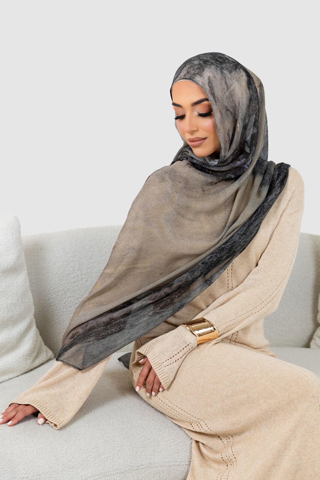 Introducing "Nature's Palette" - a breathtaking collection of modal hijabs that brings the raw beauty of the natural world to your wardrobe. The Earth stone Printed Modal Hijab was inspired by the way stones form over time—layers of sediment, mineral deposits, and the intricate veining found in stones like marble, agate, or quartz. Think of flowing, swirling patterns that mimic the movement of minerals within rocks, with rich, earthy tones like browns, creams, grey, and pops of gemstone-like colours. Product Features: • Premium Modal Material • Single stitched • 180cm x 70cm
