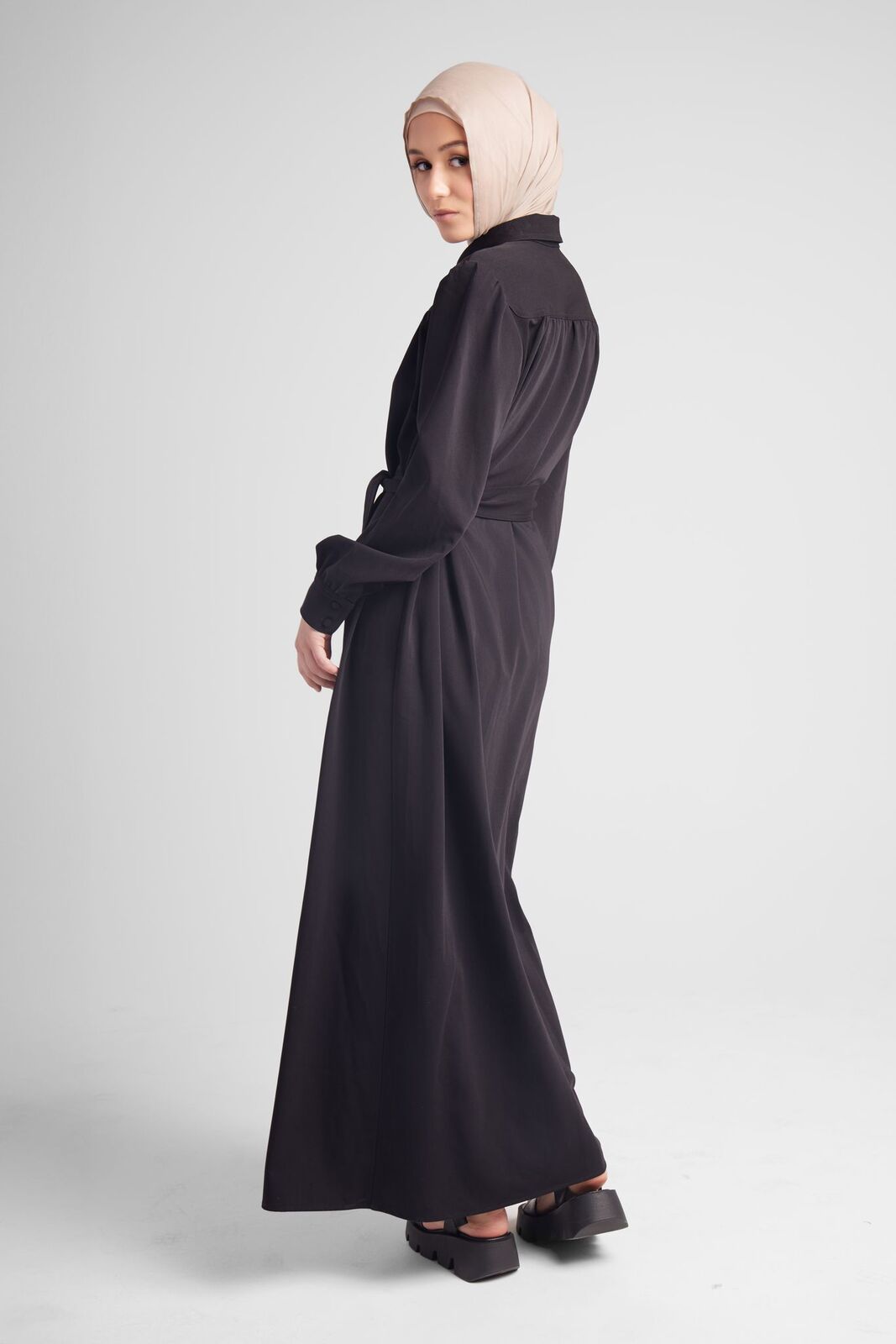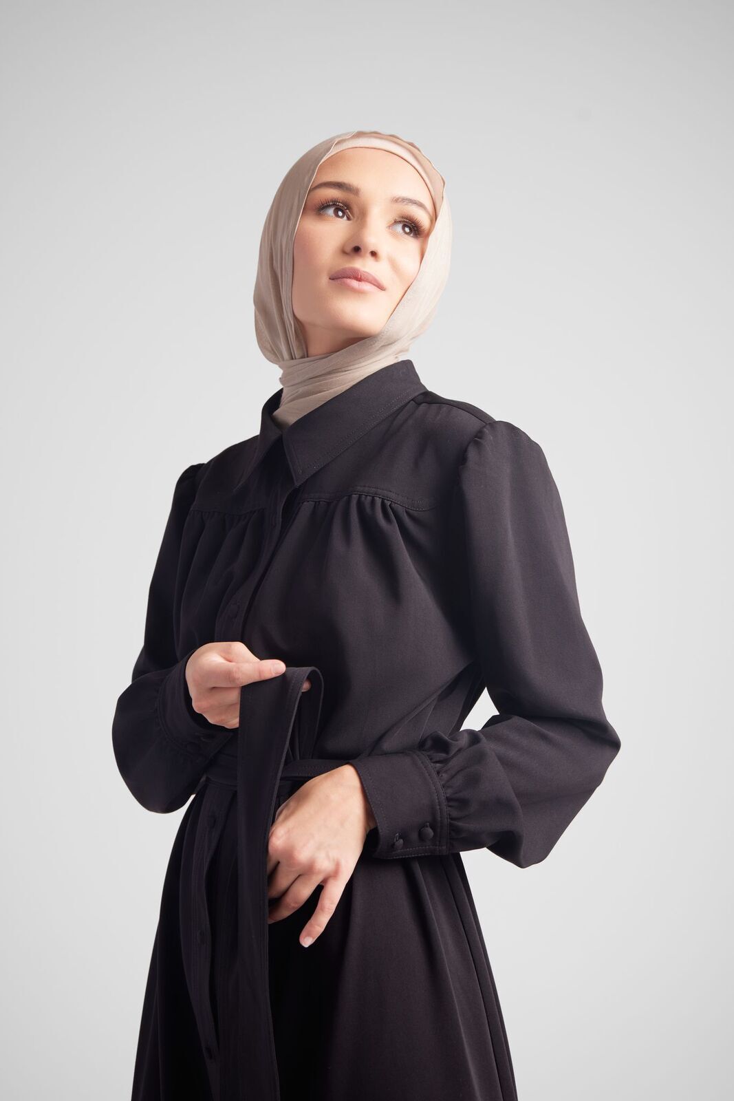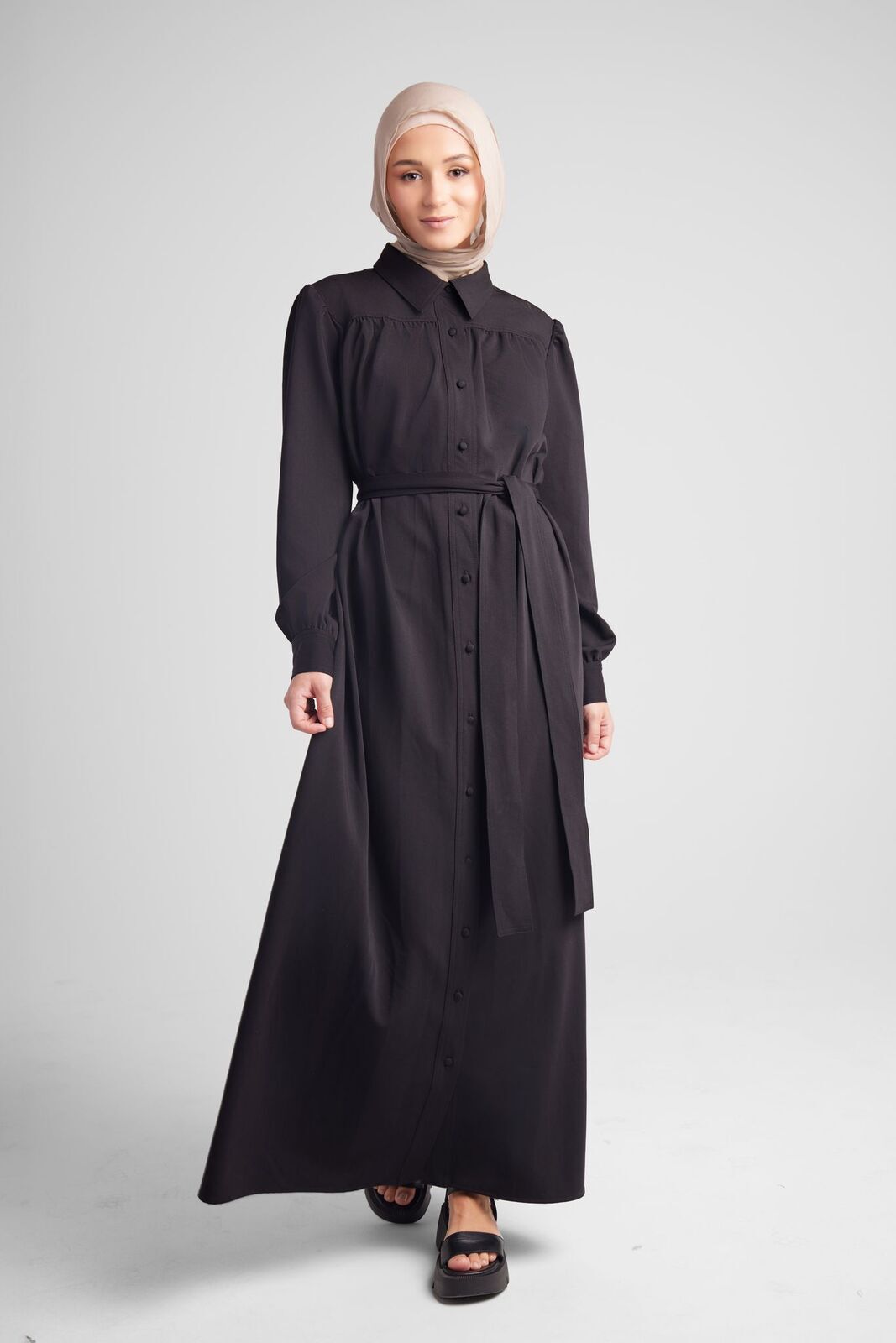 The Ecru Classic Belted Dress is the perfect selection for formal wear, offering a relaxed fit and a neat shirt collar. Its button-up closure is thoughtfully designed, providing ease for nursing mothers. The dress is finished with elegant blouson sleeves. A detachable waist belt enhances this piece, allowing you to adjust for a snug fit. Elevate to a formal ensemble with a pair of sleek heels or opt for sandals to keep it effortlessly casual.