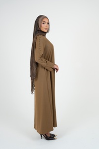 Say hello to the Fossil Abaya—a timeless, effortless piece with just the right amount of detail. The button accents on the sleeves add a refined touch, while the inner slit on the cuffs gives you that perfect balance of style and movement. Whether you're heading out for the day or dressing up for an evening look, this abaya is all about comfort, elegance, and versatility. The soft fossil shade makes it easy to pair with just about anything, making it a wardrobe essential you'll reach for again and again.