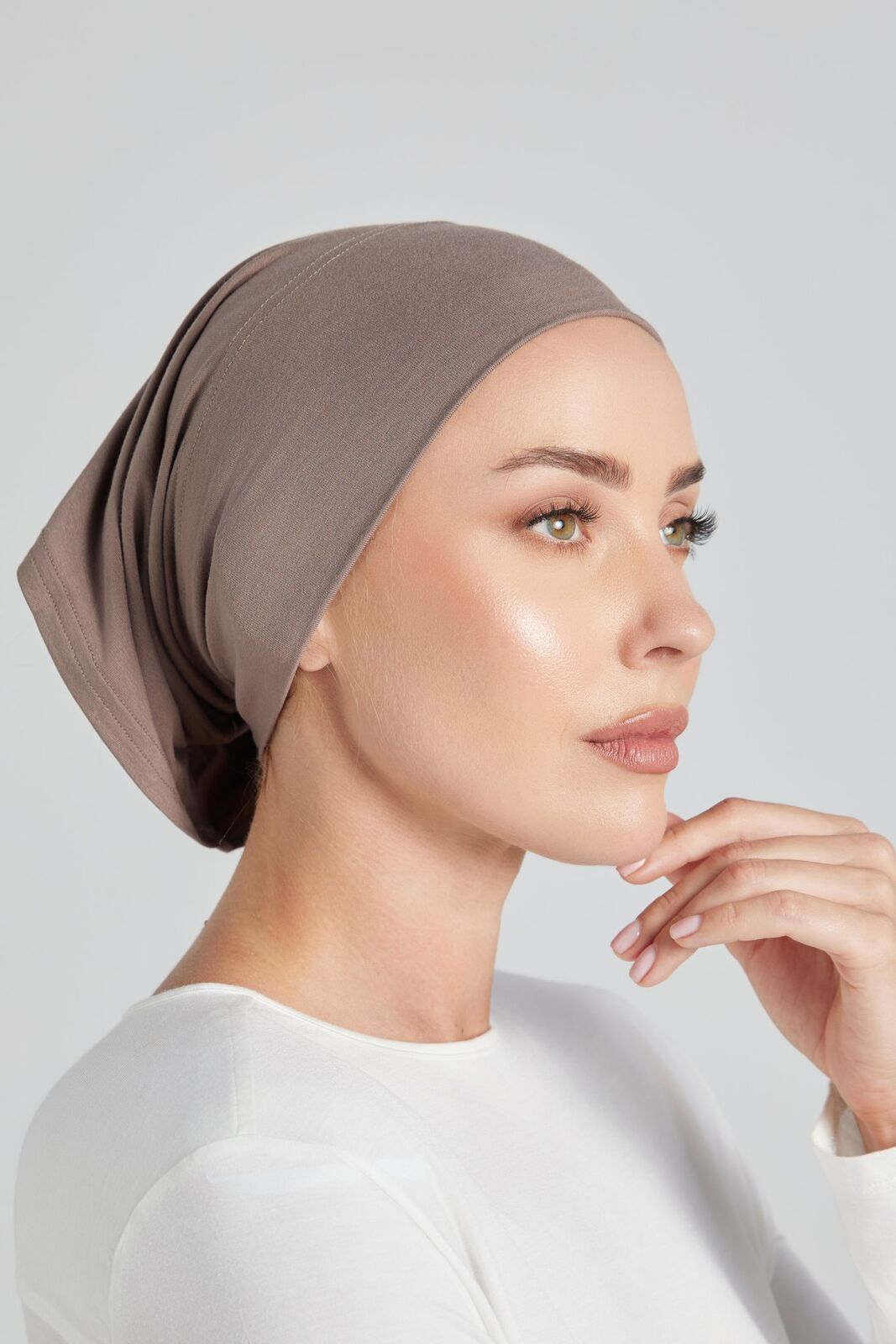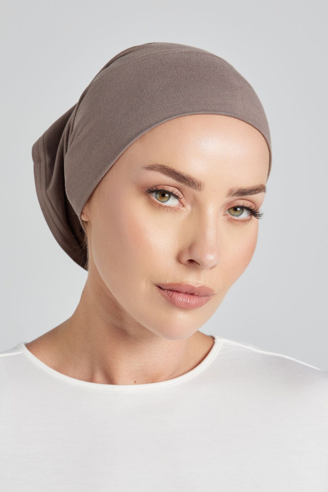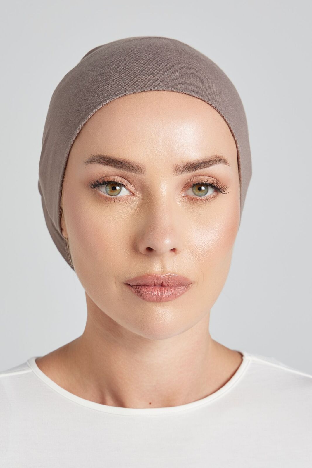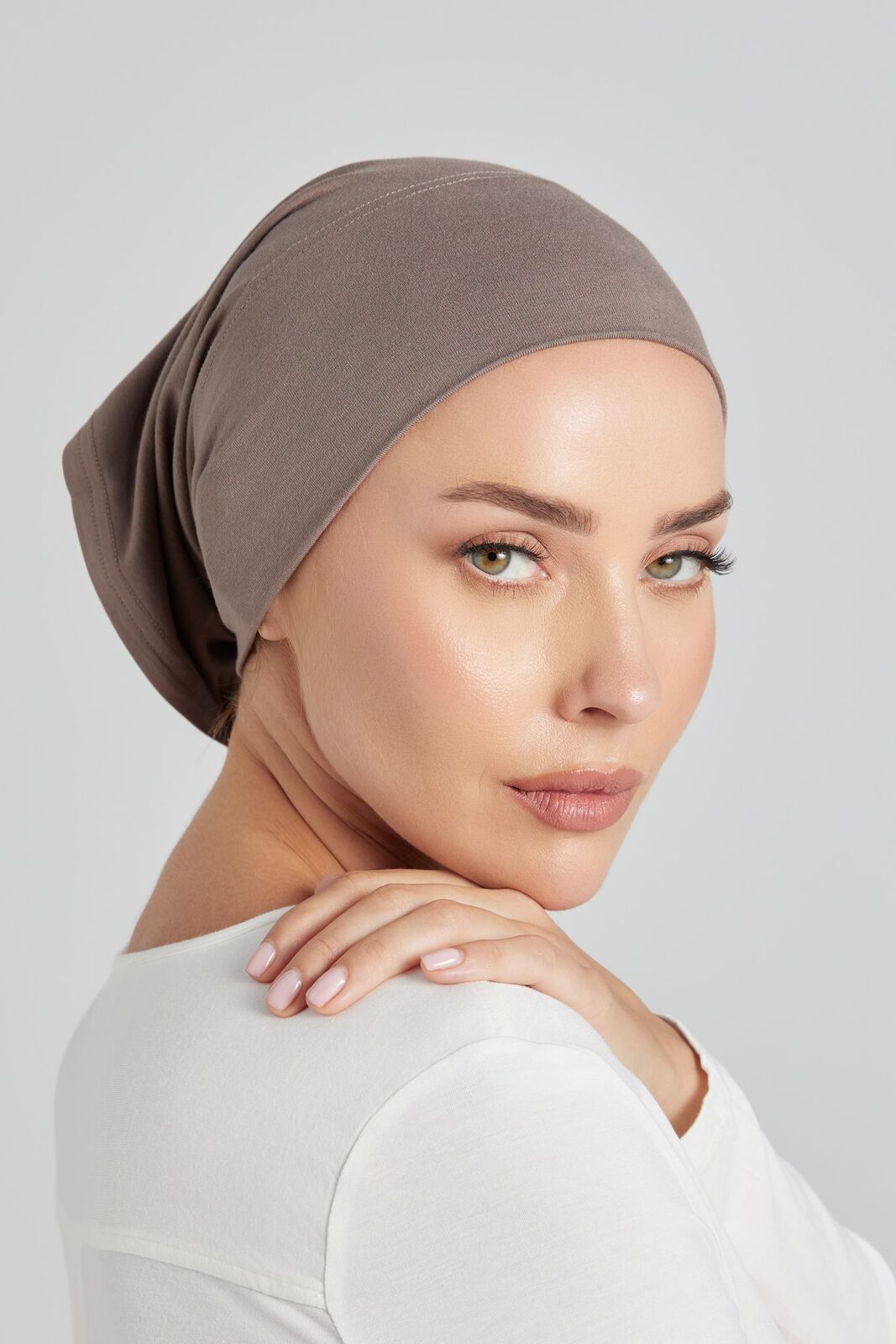 Essentials Cap made from stretch-knit Japanese cotton. Tube cap style with extra length for cover. Open from back. Measurements: width 22cm length 25cm.