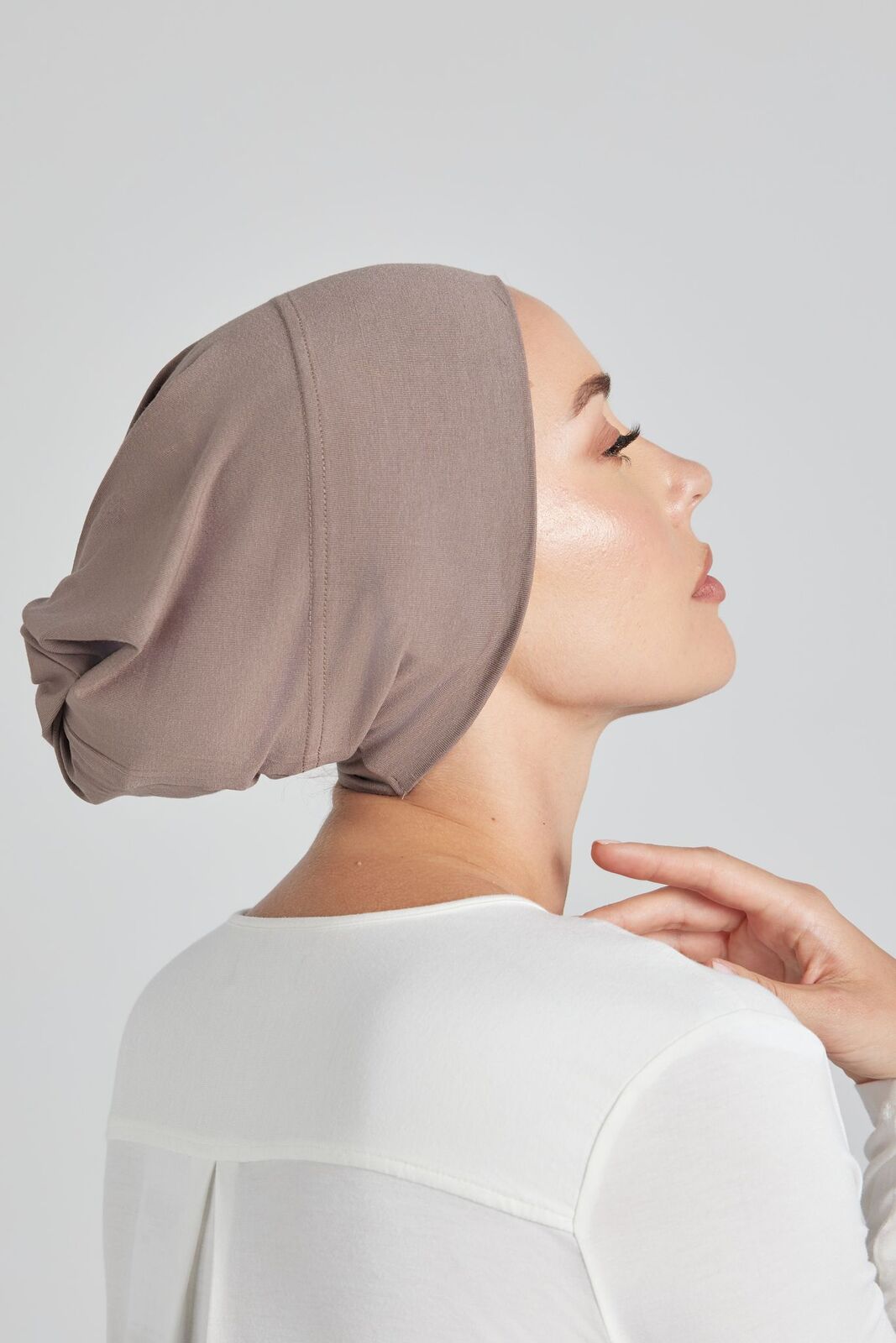 Essentials Cap made from stretch-knit Japanese cotton. Closed cap style with extra length for cover.  Non-sheer.