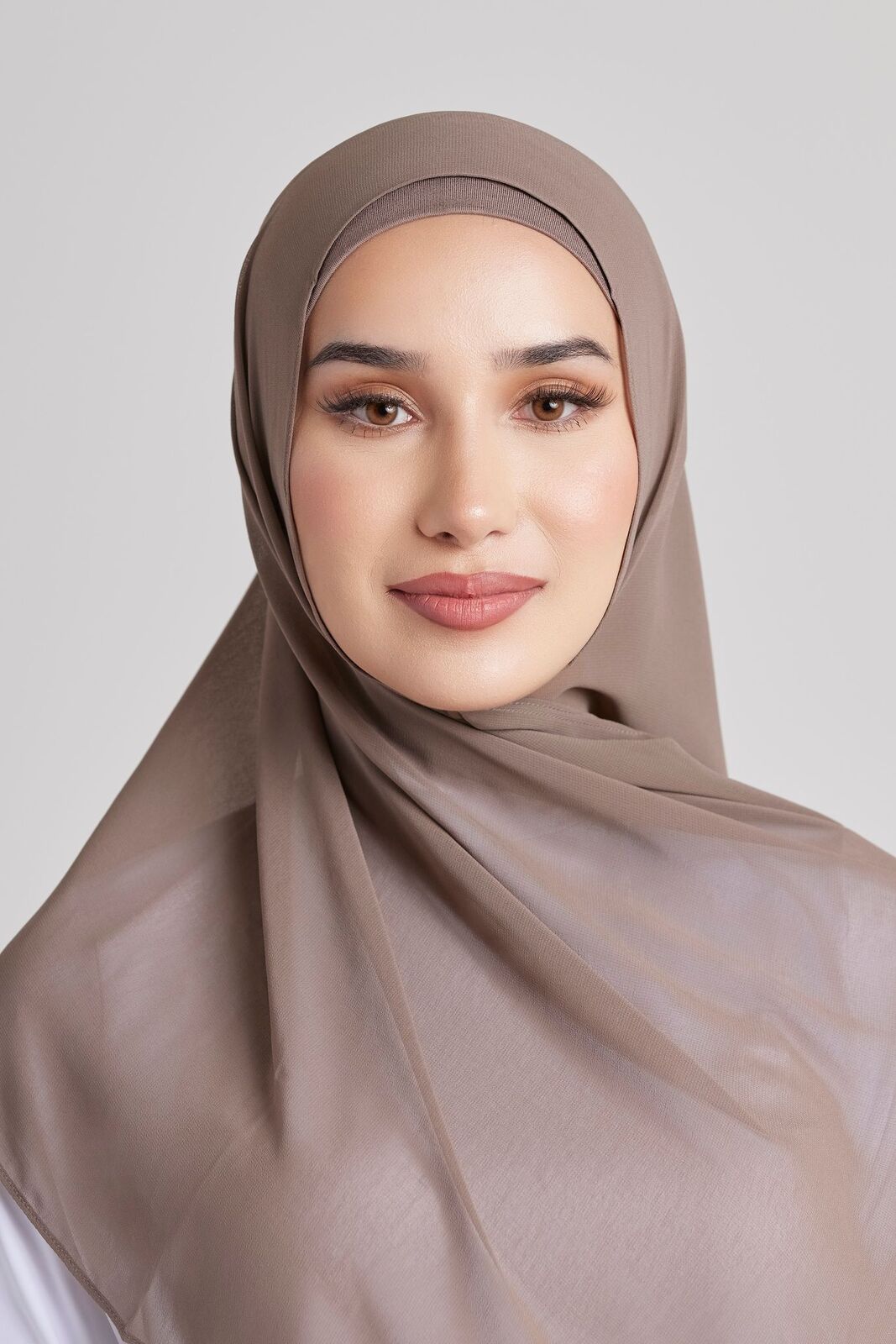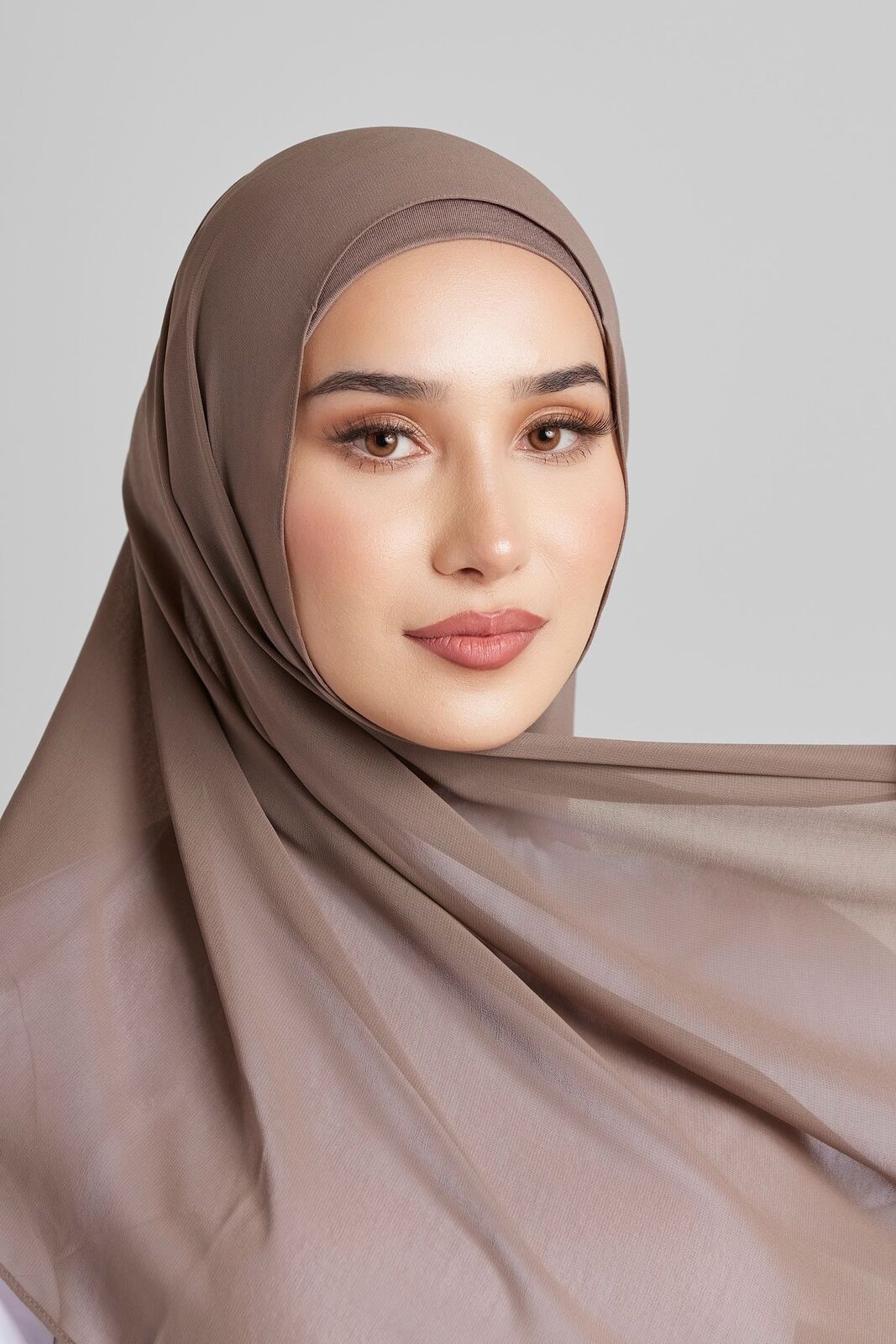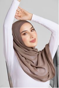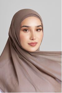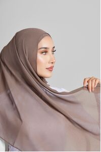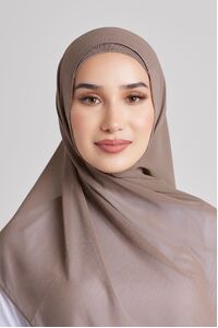 Soft polyester hijab in plain fossil colour. Non-slip fabric. Double-rolled hem.