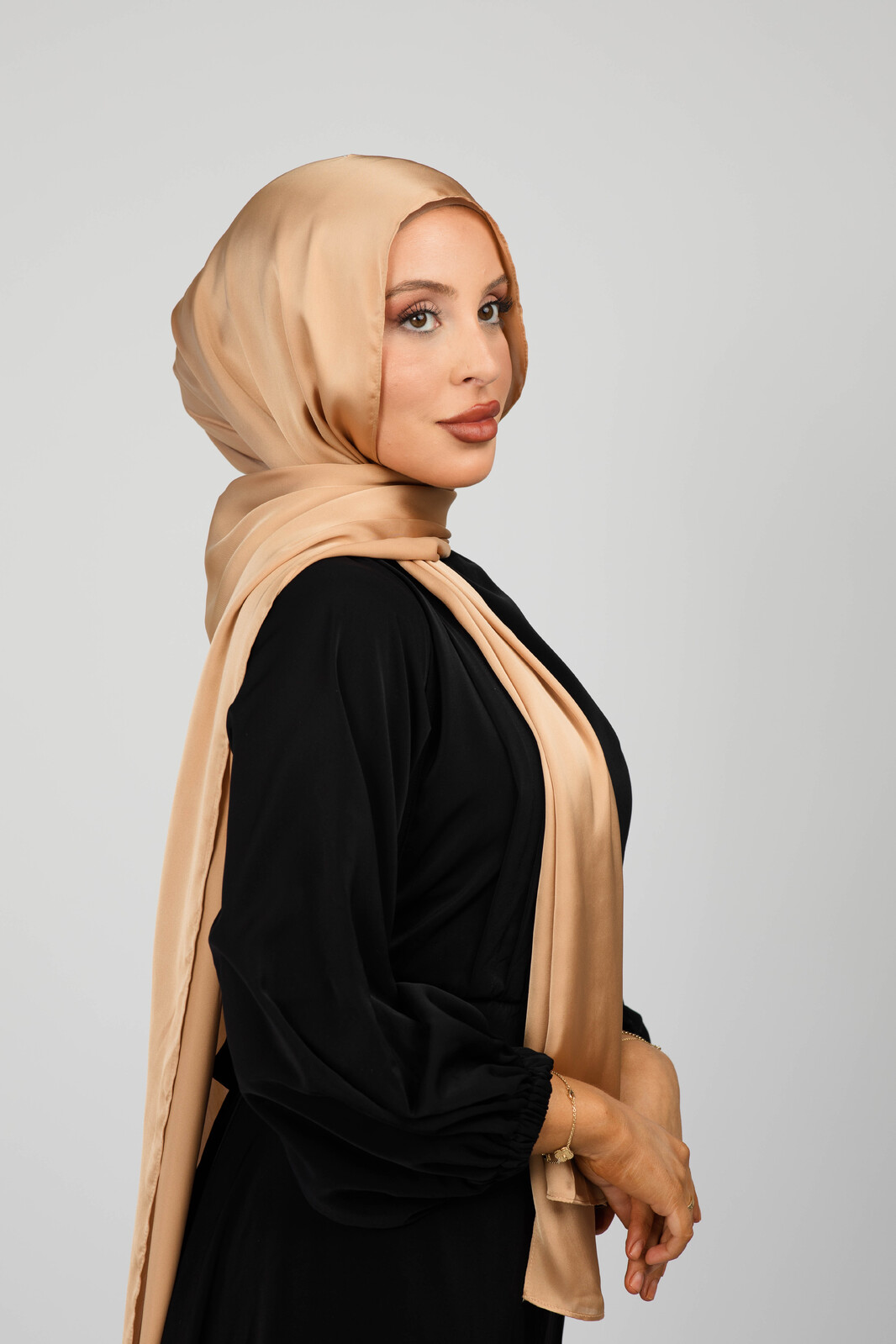 Our Gold Luxurious Silk Hijab is a must-have for any special occasion. The soft, luxurious material is carefully hand-stitched to ensure quality and comfort. With its perfect drape, our hijab adds the perfect touch to any outfit. The dreamy silk material is guaranteed to bring out your natural beauty, making you look and feel your best. Our Gold Luxurious Silk Hijab is the ideal piece for those who want to make a statement with their style. It stands as a testament to our commitment to providing top of the line products that are of the highest quality and luxury.