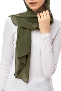 Soft polyester hijab in plain green colour. Non-slip fabric. Double-rolled hem.