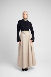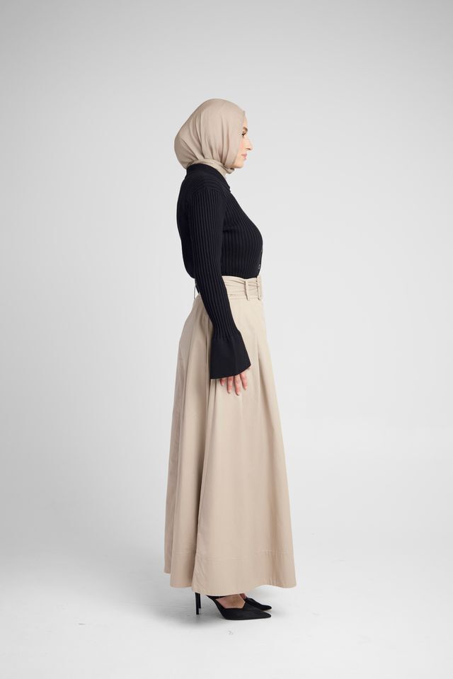 Elevate your wardrobe with our High Waist Belted Skirt, a staple for any fashion-forward closet. Crafted with a high-waisted design and an elegant A-line silhouette, this skirt showcases box-pleat detailing and a chic front button fastening. The belted waist not only accentuates your figure but also adds a touch of refined elegance. Perfect for both casual outings and formal events, this versatile piece seamlessly blends style and comfort.
