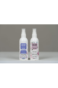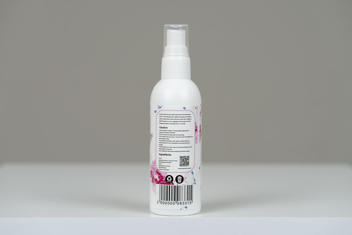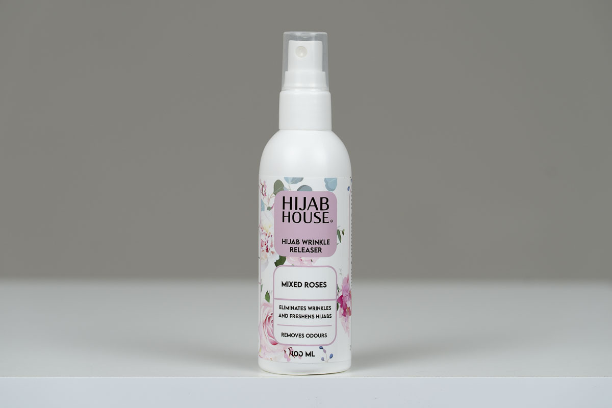 Our anti-wrinkle spray is a quick and easy way to refresh your hijab and get out those wrinkles on-the-go! Available now in two different scents: Lavender and Mixed Roses.