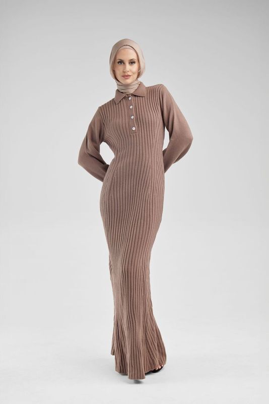 Elevate your wardrobe with the chic Knitted Polo Dress. Made from ribbed-knit fabric, this maxi dress boasts voluminous sleeves that add a touch of dramatic flair. The partially buttoned front provides both convenience and a nod to timeless polo aesthetics. Its sleek silhouette promises to flatter your figure, while the soft, stretchy material ensures all-day ease. Whether it's for a casual brunch or a smart-casual event, this dress is the versatile staple you've been searching for. Embrace effortless elegance with a piece that's as enduring as it is exquisite.