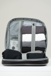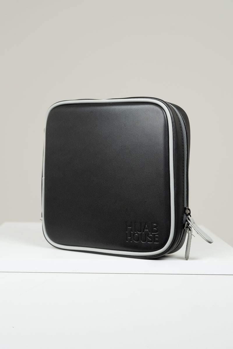 Introducing the Mini Hijab Hub, a compact version of the Hijab Hub. Offering ample space to store a variety of hijabs. Inside the bag, you'll find a well-thought-out design with organizational elements, such as two stretchy bands strategically positioned to secure your hijabs and caps neatly. No more dealing with tangled scarves – these bands ensure your hijabs remain neatly folded and in place while you're on the go. The Hijab Hub also features one small compartment specifically for storing your hijab pins. Tailored for travel, this lightweight and compact design makes the Hijab Hub the ideal companion for all your adventures.