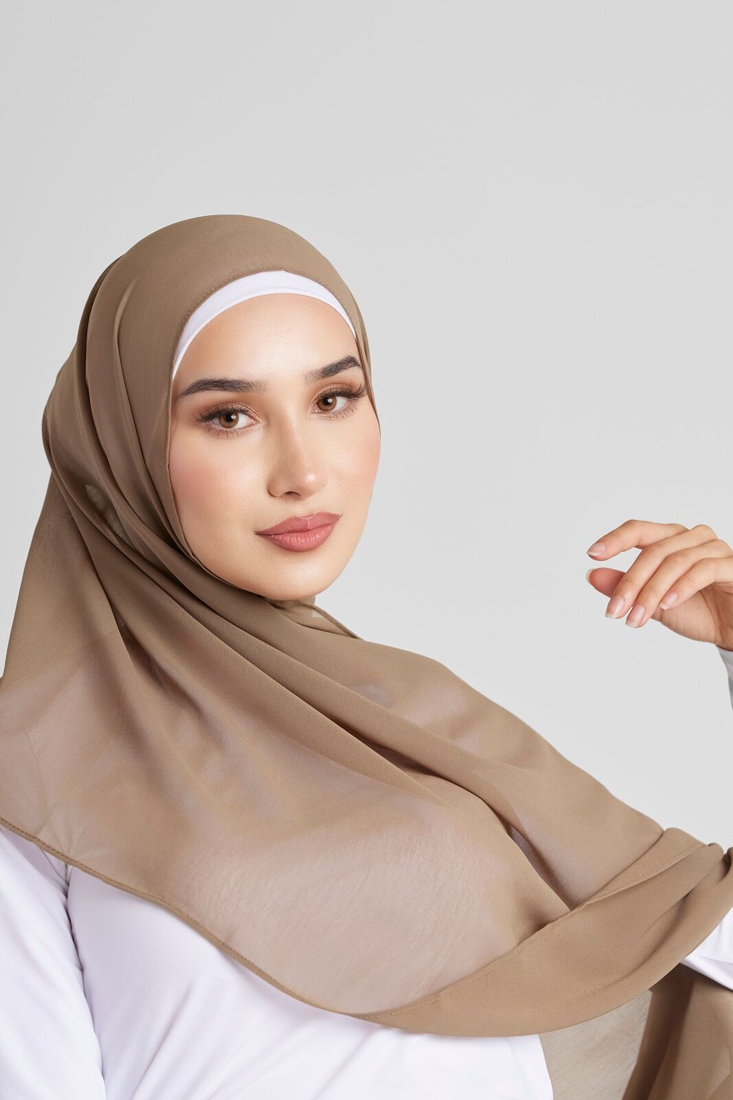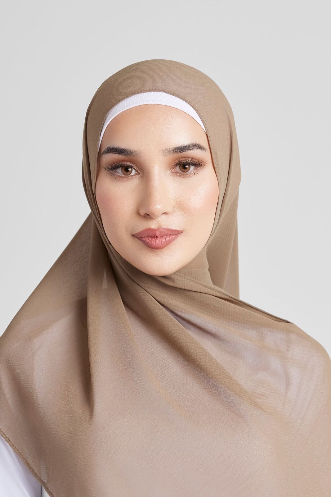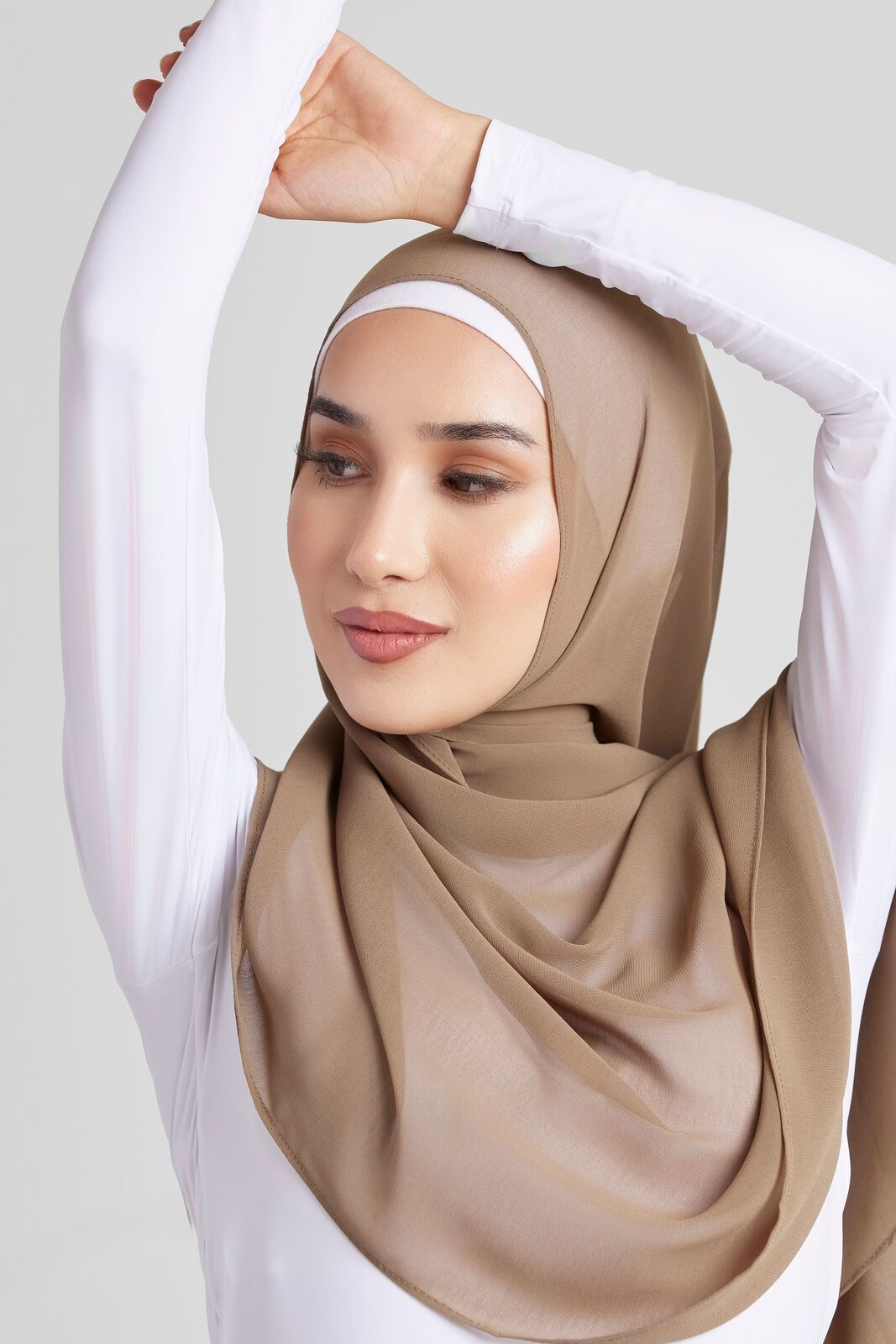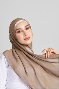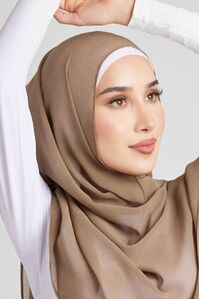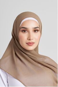 Soft polyester hijab in plain olive colour. Non-slip fabric. Double-rolled hem.
