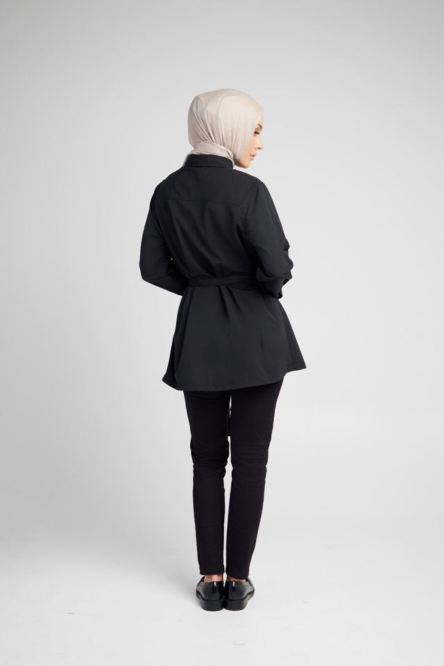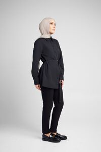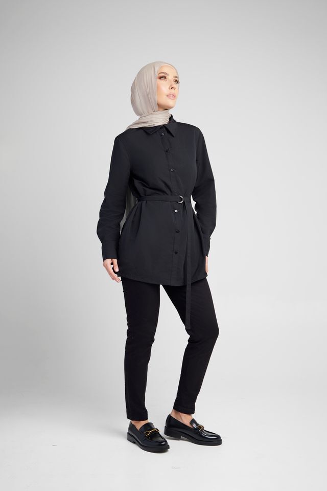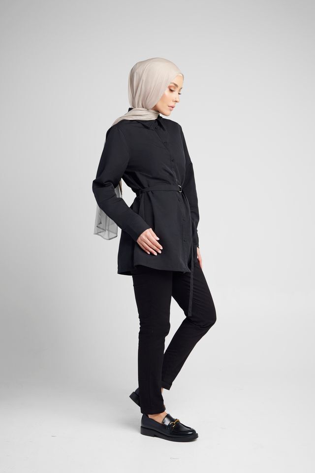 Elevate your wardrobe with the Onyx Belted Shirt, crafted from premium black cotton. Featuring a classic collar, front button fastening, and a belted waist, it offers a perfect blend of elegance and structure. Long sleeves with buttoned cuffs add a refined touch. A timeless