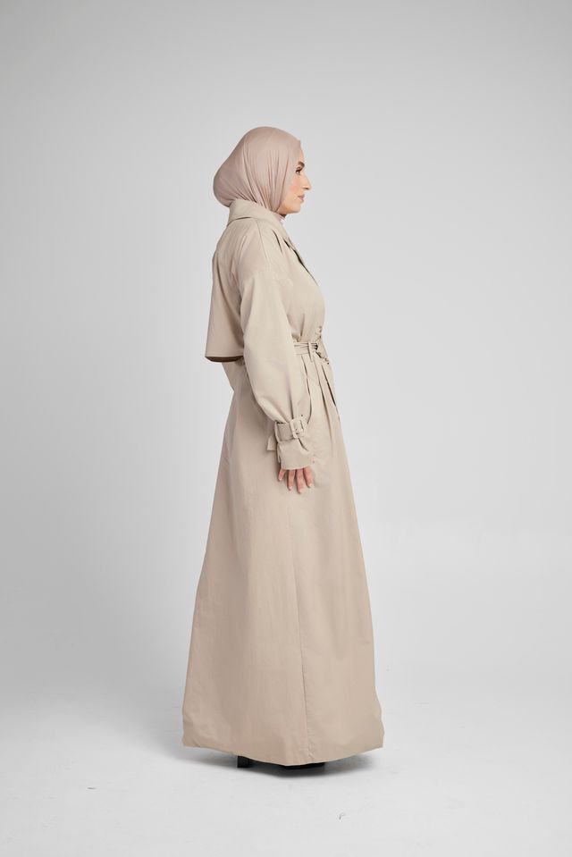 coat effortlessly merges style with practicality. Wear this coat either as a coat or as a trench dress. Elevate your wardrobe with this classic piece that smoothly shifts from casual to formal occasions.