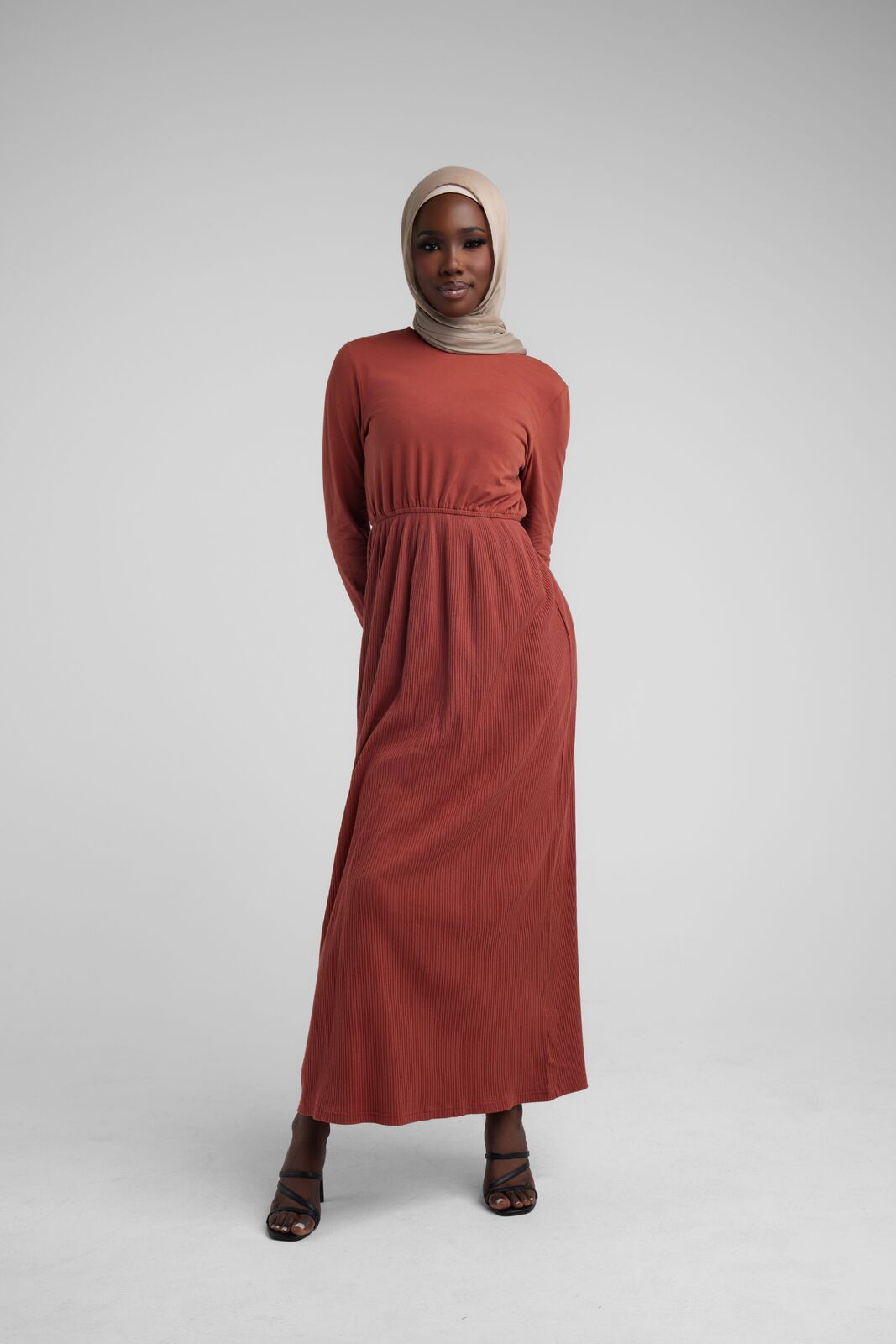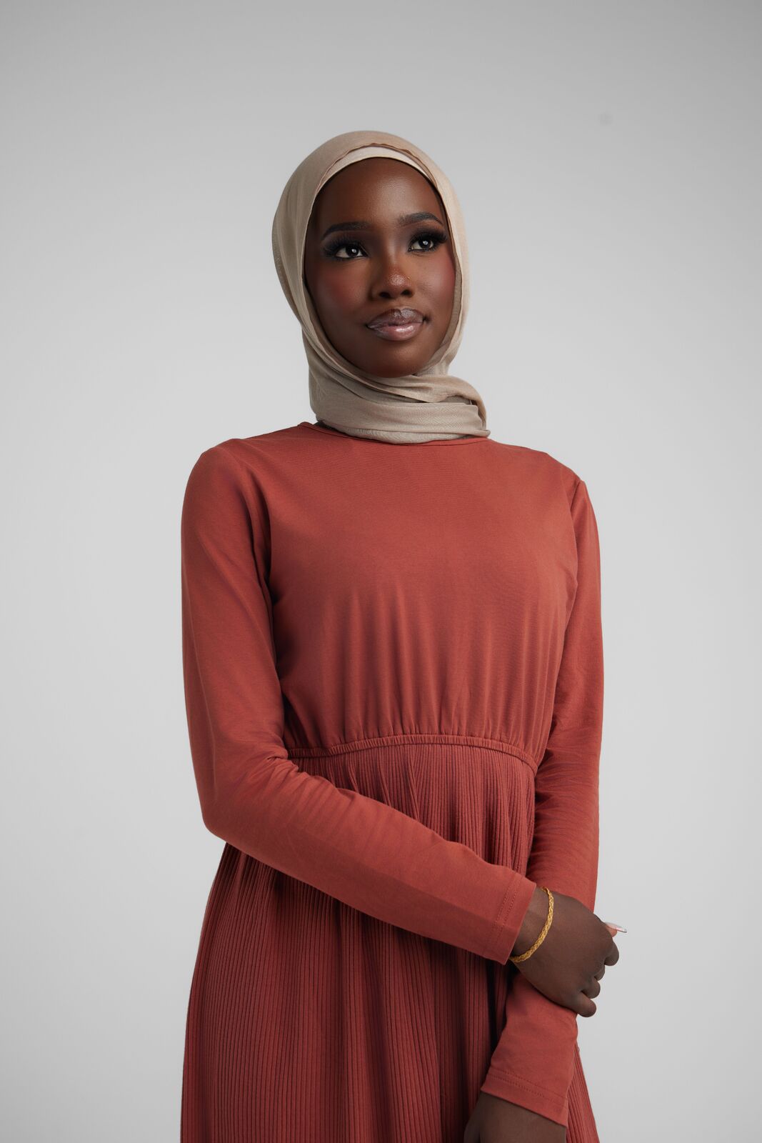 This classic dress is designed with comfort and style in mind, offering you a comfortable and stylish look. Made from a ribbed, subtle pleated skirt and a soft cotton top, this dress features an elastic waist for a slimming, non-clingy look. Not to mention that it is also non-sheer, allowing you to stay comfortable and stylish all day long. Perfect for any occasion, this Basic Hijab Dress will be your new favourite go-to!