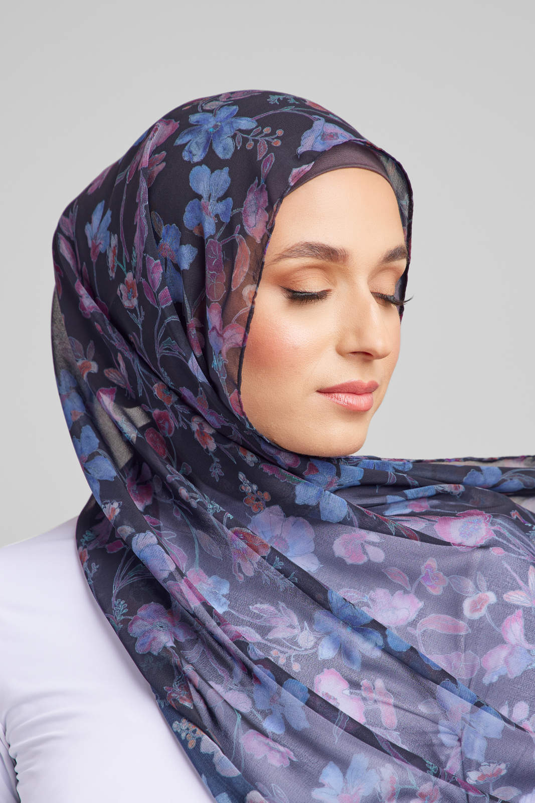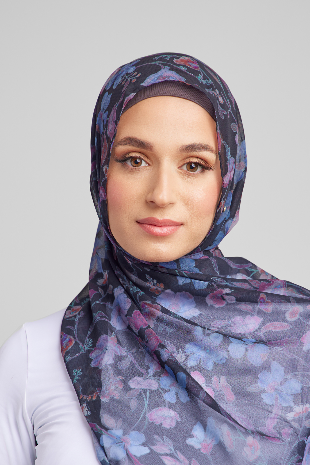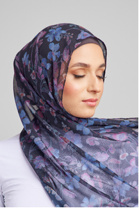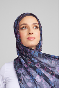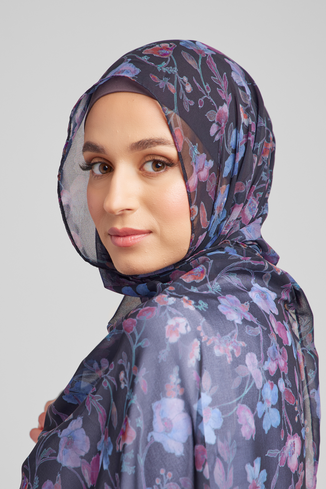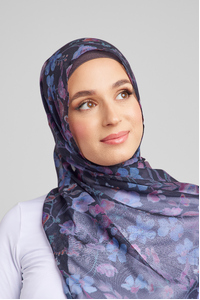 The Serenity Blossom hijab is an exquisite piece, crafted from soft chiffon that ensures both elegance and comfort. Its delicate material drapes effortlessly. Adorned with a serene floral print, the hijab boasts an array of muted blush, soft peach, and subtle green tones with a dark background, offering a versatile palette that pairs seamlessly with a multitude of outfits. Whether for a casual day out or a evening event, this hijab's has got you covered. • Material: chiffon • Size: 60cm x 170cm