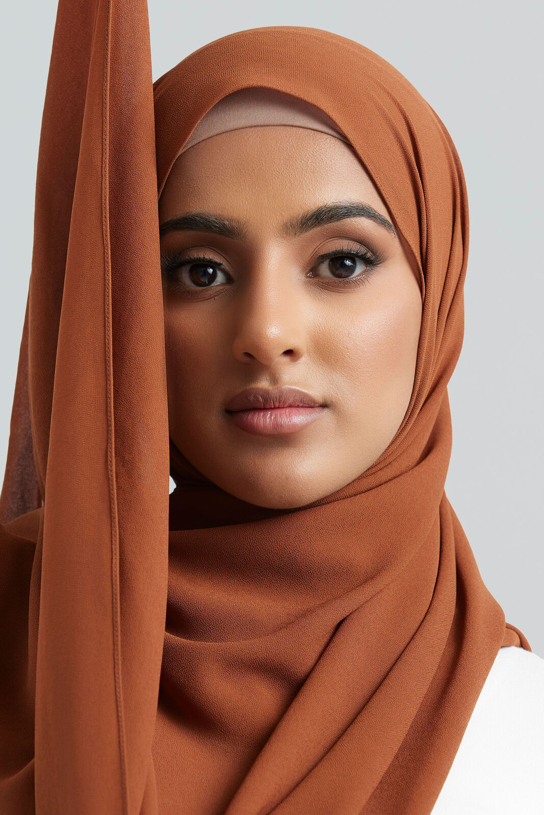 Introducing our famous signature plain hijab. Our plain hijab is made from essential chiffon material. Featuring a lightweight material that is soft to the touch, and breathable. They drape easily and have a slight stretch. It's perfect for all-day wear, whether you're dressing up for a special occasion or just going about your day, this is the perfect hijab for you! We have put in a lot of effort to assemble this selection featuring a diverse array of shades that can match your daily lifestyle.