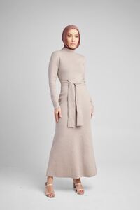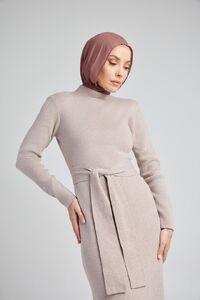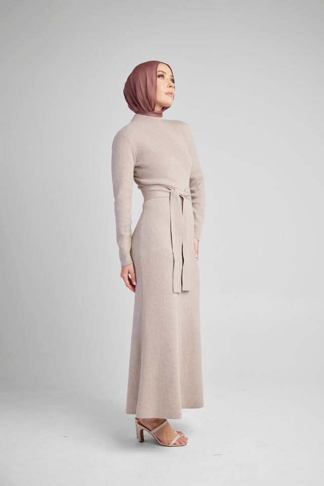 Elevate your winter wardrobe with the Taupe Slim Belted Dress. Crafted from cozy knitted material, it features a chic turtleneck and adjustable belt for a flattering silhouette. Perfect under coats, pair it with boots for a stylish cold night out. This versatile piece can easily