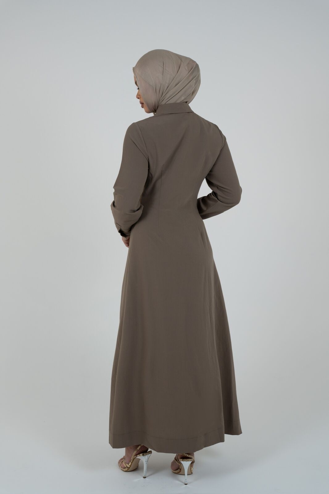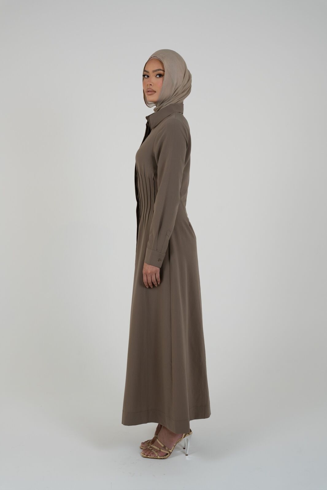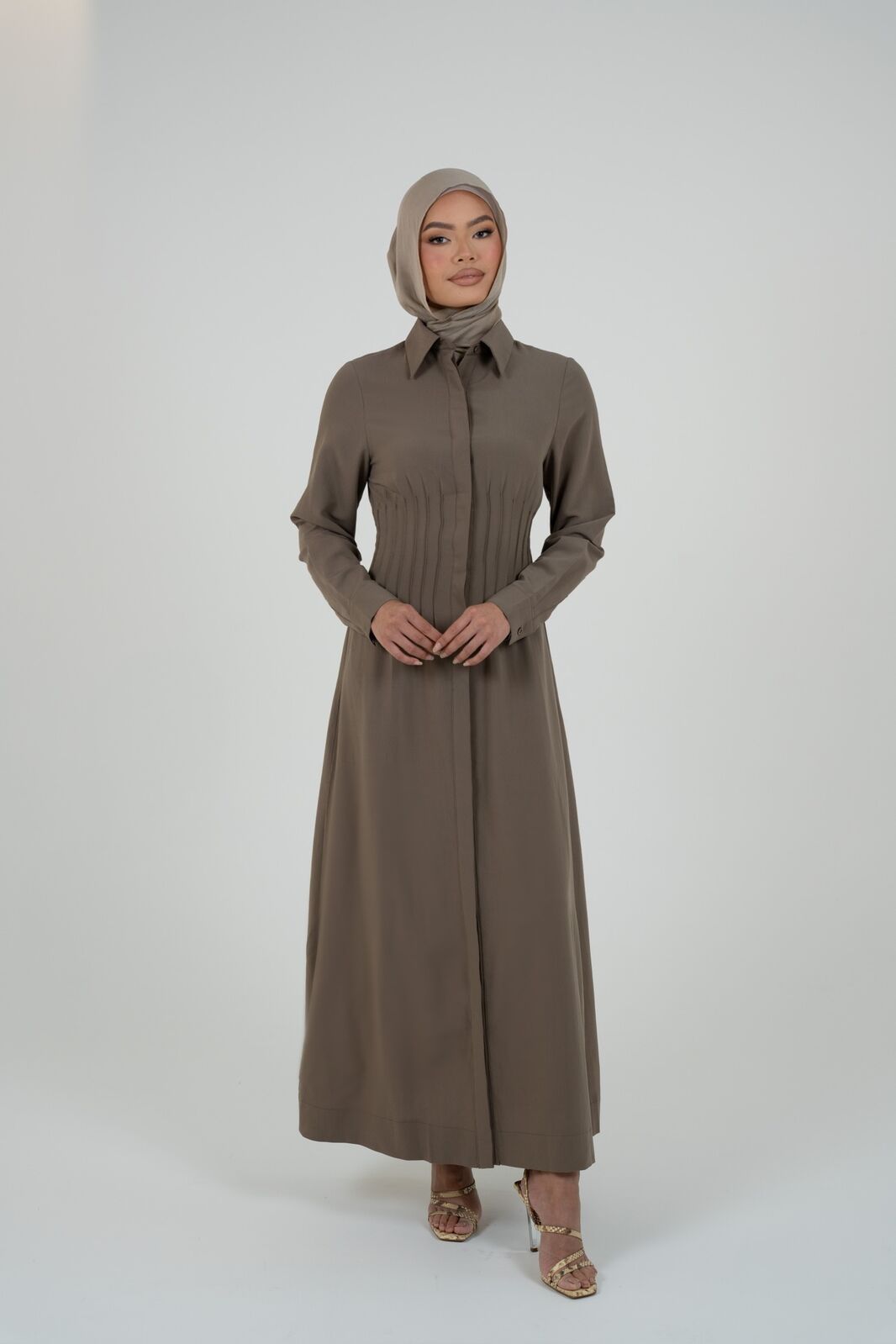 Say hello to the Truffle Dress—the perfect balance of style and ease. With its hidden front buttons, it keeps things sleek and effortless, while the pointed collar adds just the right amount of polish. The cinched waist gives you a flattering shape without feeling too tight, making it super comfortable to wear all day. Whether you're dressing it up or keeping it casual, this is one of those timeless pieces you'll keep coming back to.