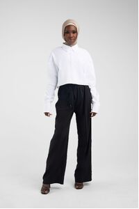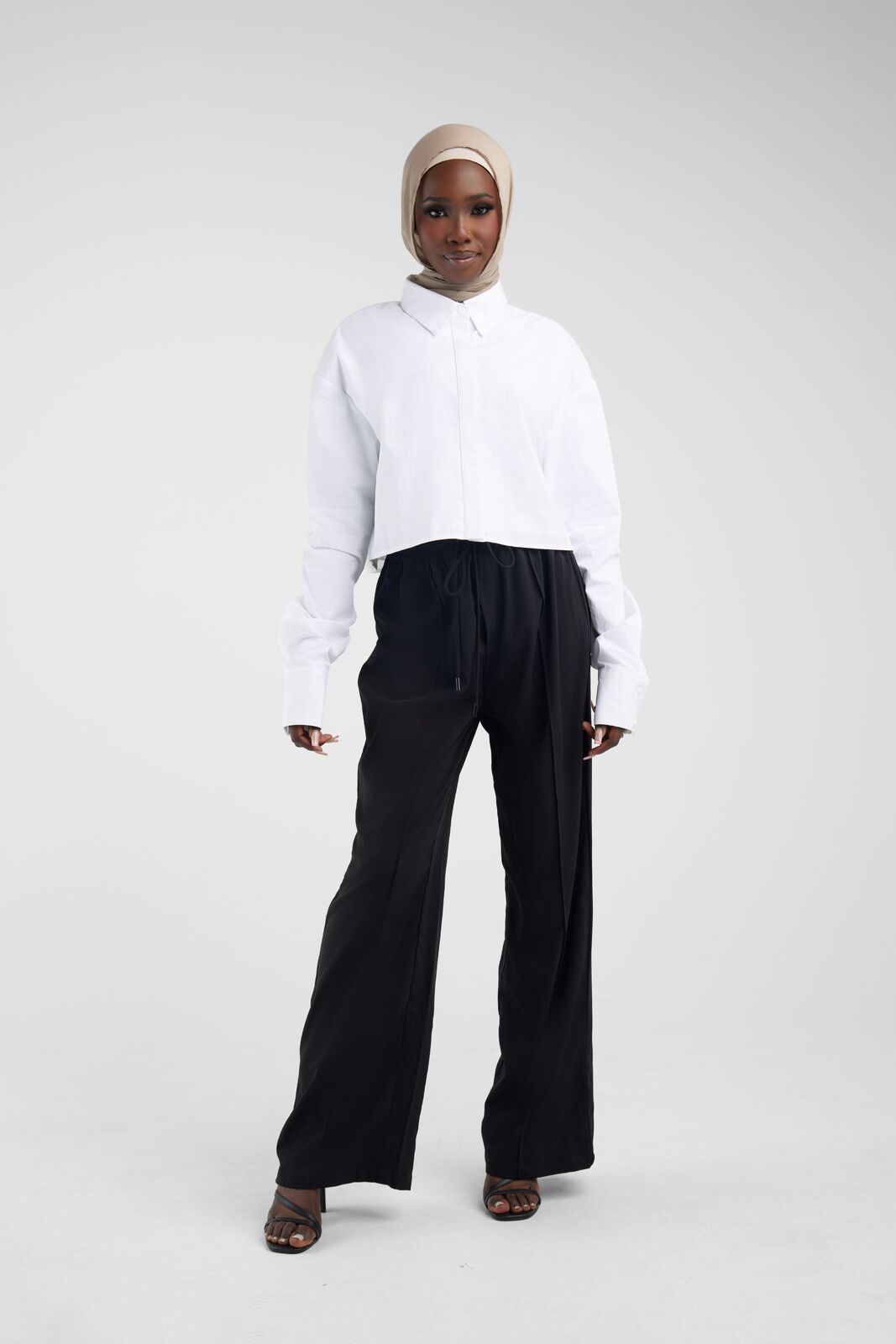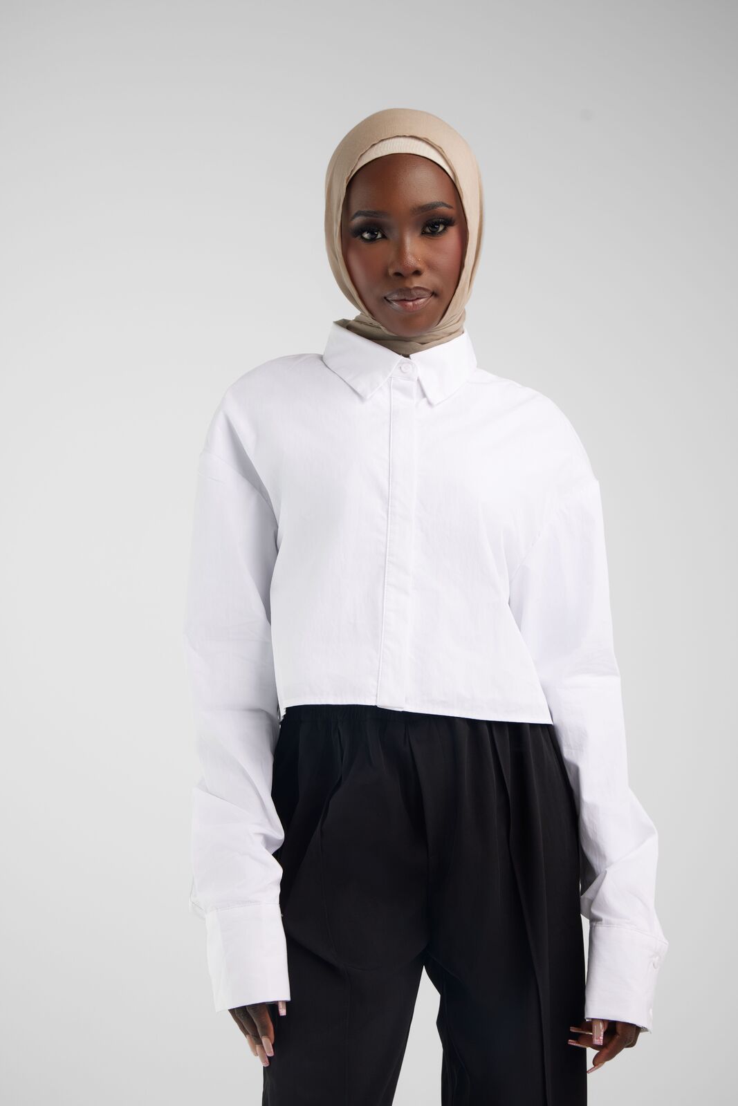 The Cropped shirt is a wardrobe essential, a perfect blend of comfort and style. Expertly crafted from a breathable material, this piece is the ultimate all-year essential, promising both ease and elegance. The timeless silhouette ensures a flattering fit that complements any high-waisted skirt or pants. Its crisp white hue and effortless design make it a versatile staple for any fashion-forward ensemble. Embrace this must-have shirt and transform your everyday look with its unmatched sophistication and flair.