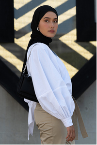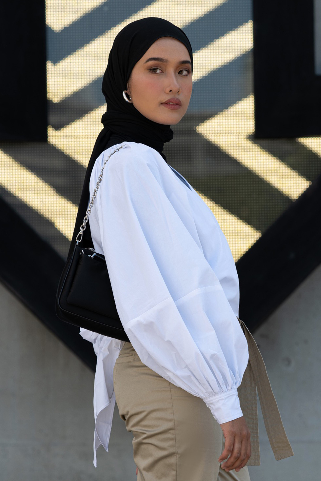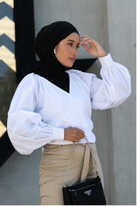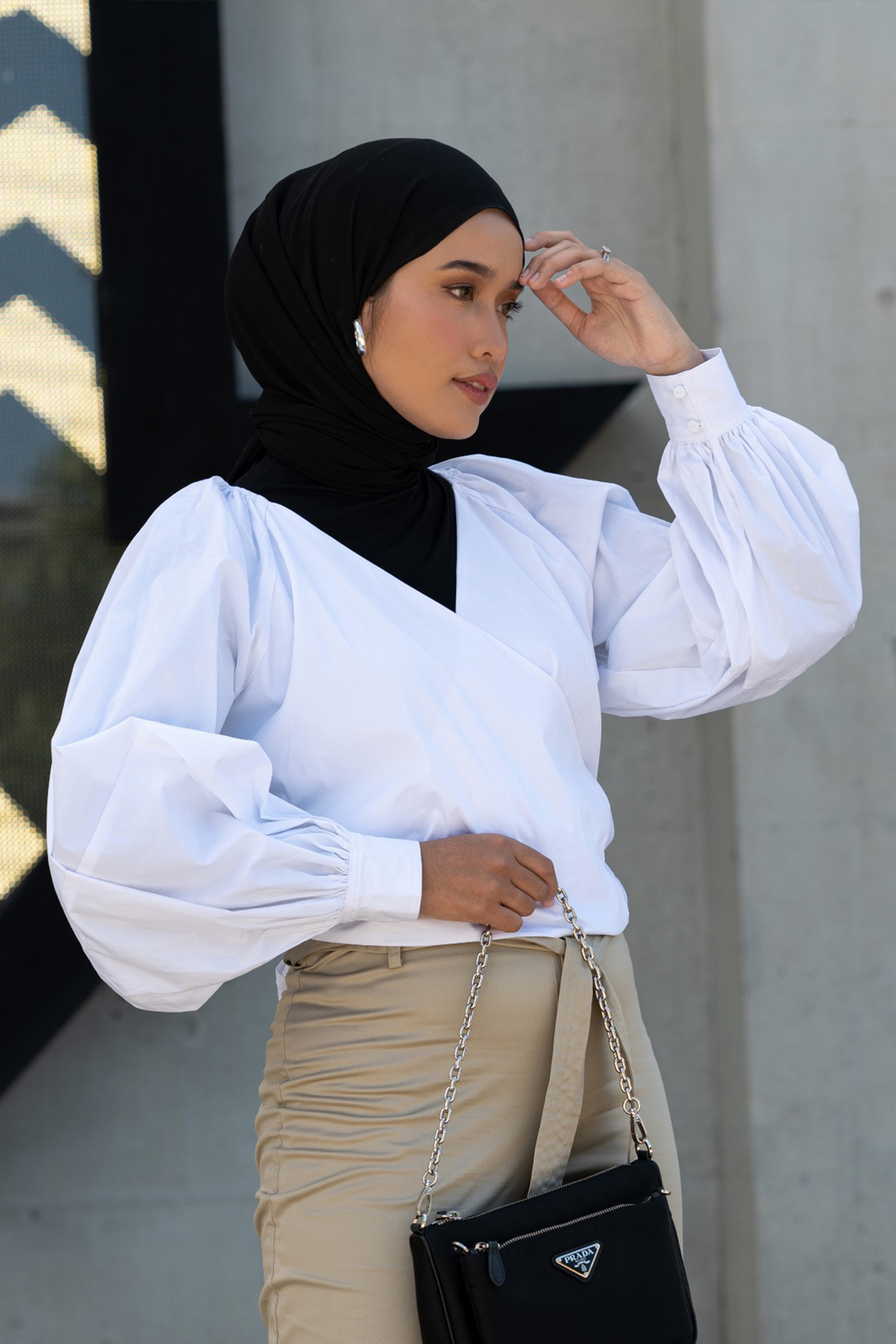 Meet the White Wrap Blouse, the perfect blend of comfort and style. Designed to wrap around the body for a custom fit, it features a flattering V-neck with an elastic neckline that sits just right. The cuffed balloon sleeves add a touch of volume, giving it that effortless chic vibe. Made from non-sheer fabric, it’s comfortable, easy to wear, and pairs beautifully with everything in your wardrobe.